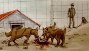 (朝鮮人が人糞の餌を犬猫に与える⇒食べる犬、猫⇒それを食べる朝鮮人⇒排便⇒犬猫が便を食べる。)