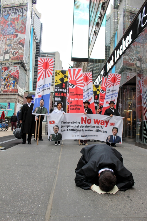 東京五輪期間中に、東京に日本の蛮行を知らせるポスターを張る計画をしていたが頓挫、今度は世界中で旭日旗を捨てるキャンペーン、旭日旗を捨てる専用のゴミ箱を世界中に配置する計画を発表