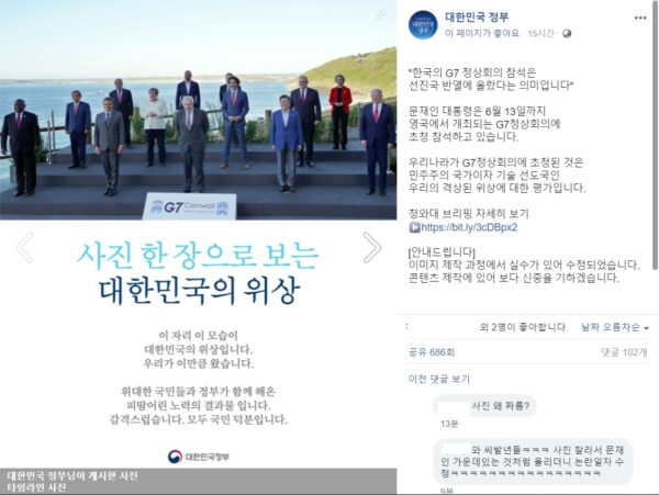 일본인들은 가질수없는 독립 운동ㅋㅋㅋㅋㅋㅋㅋ青瓦台(韓国大統領府)公式HP、日本の菅首相を写真の端にしたい為に、