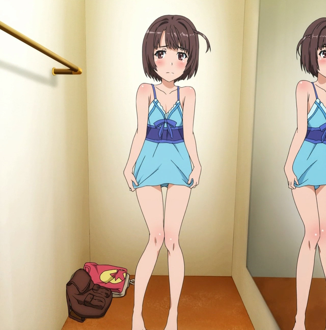 美琴が選んだ水着を試着する衿衣。