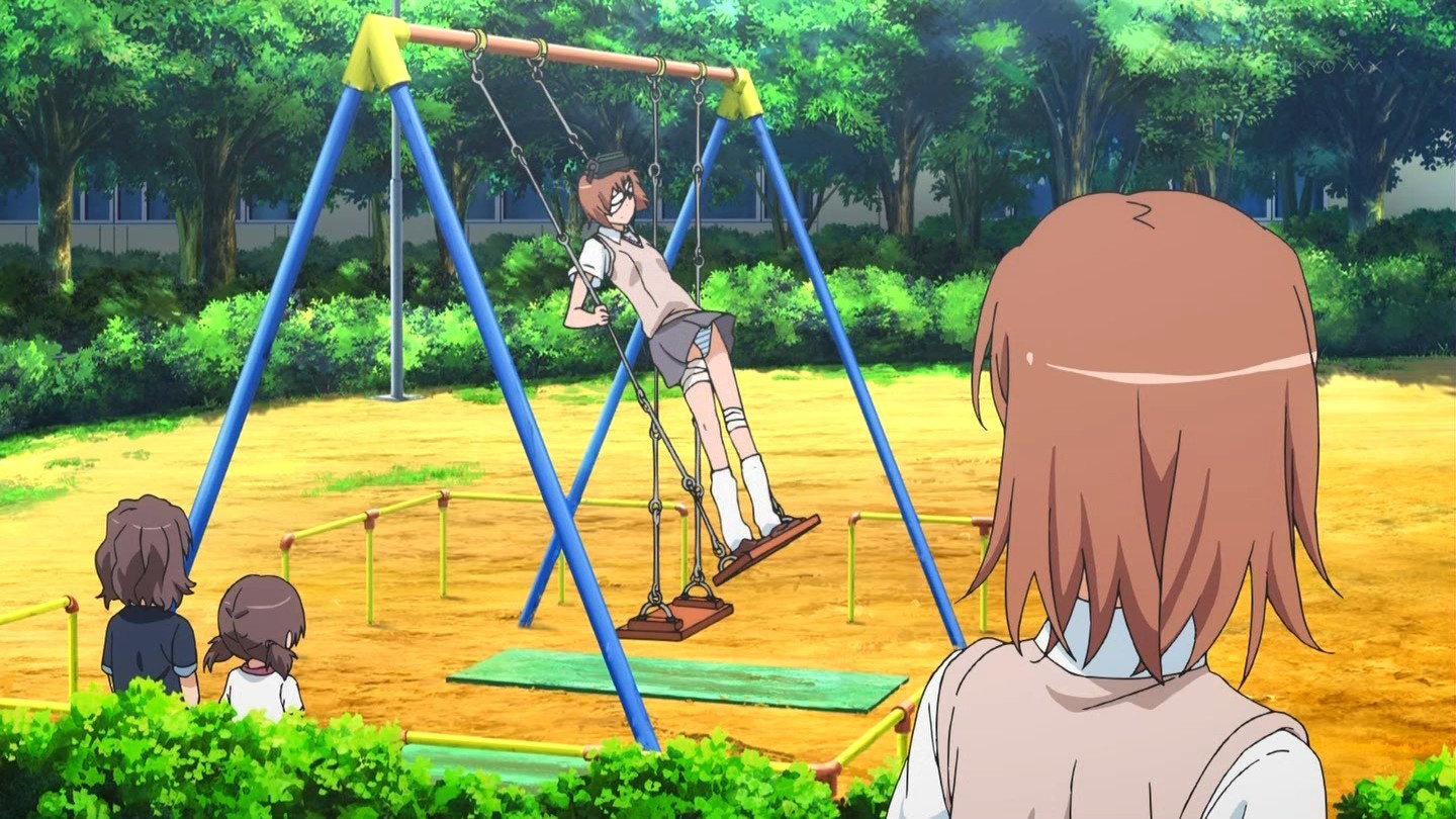 パンチラしながらブランコを立ち漕ぎする、ミサカ9982号。