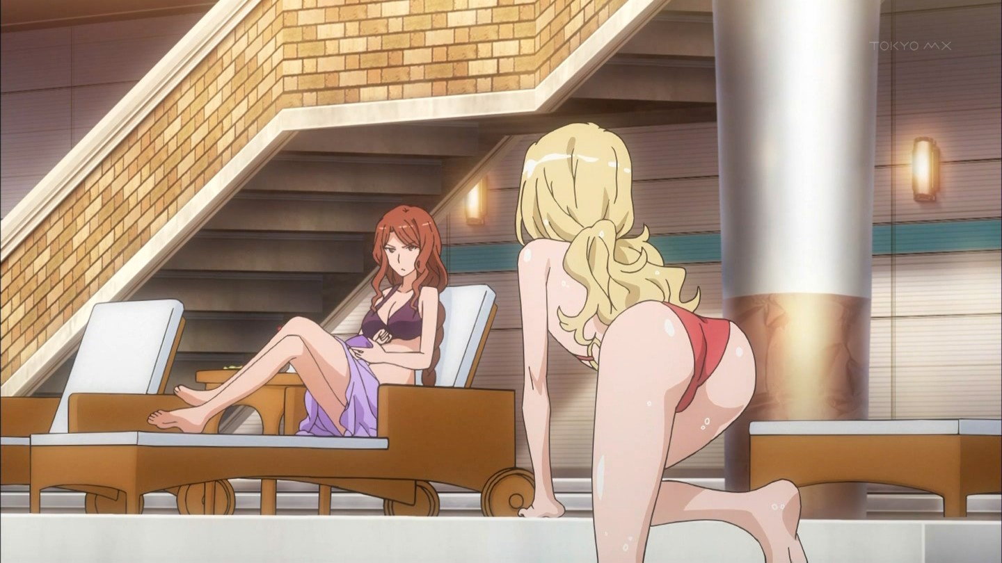 モノキニ水着姿のフレンダ。