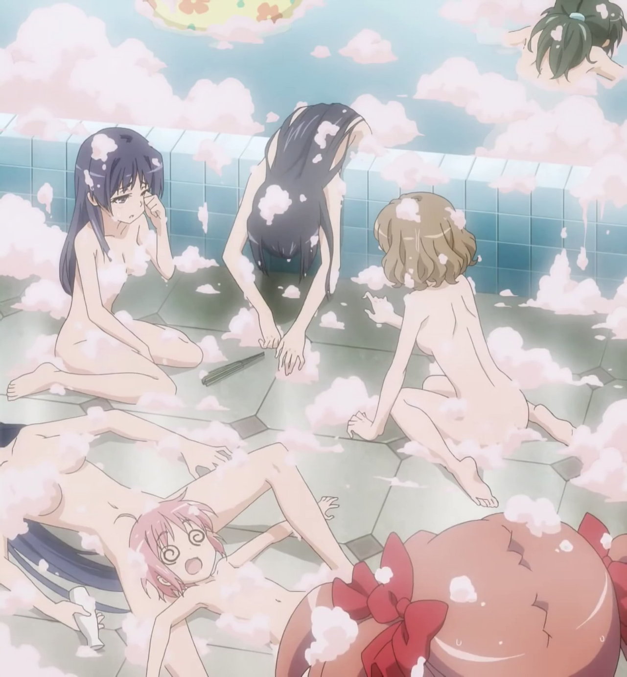 泡まみれになる女子たち。