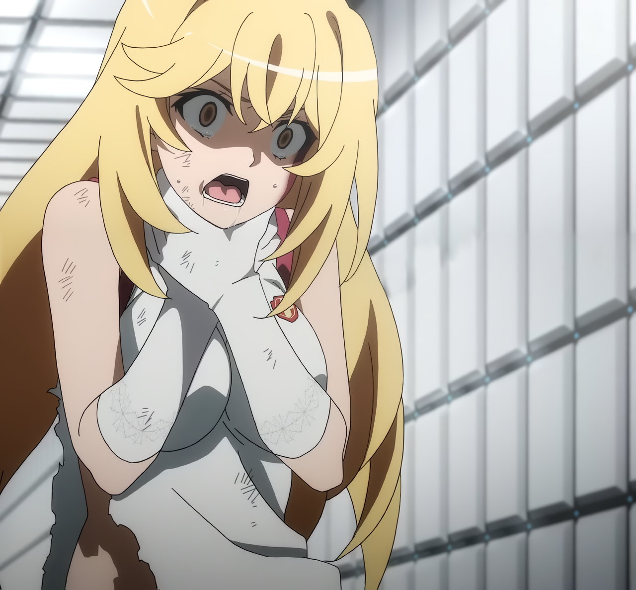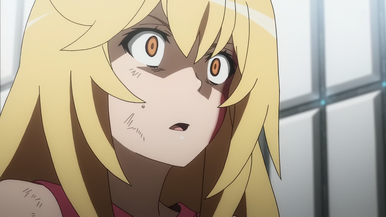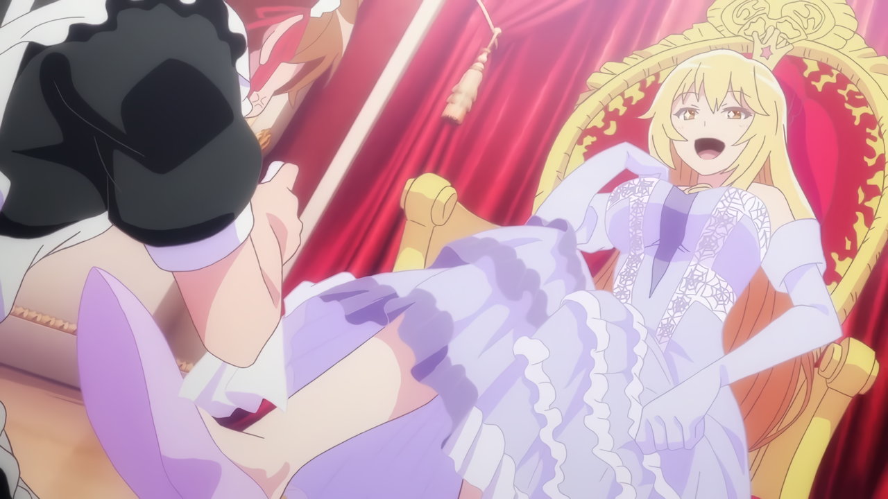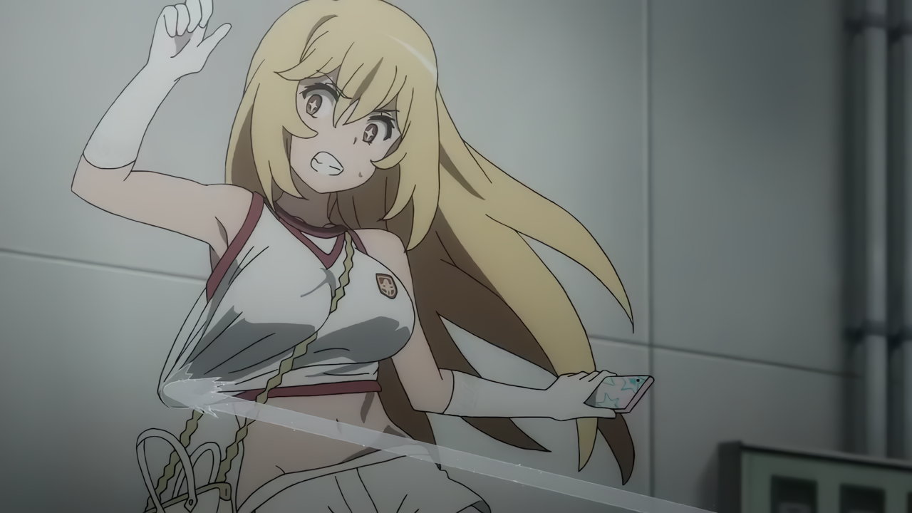 涙子にお約束のスカート捲りされる飾利。しかし毎度ながら、視聴者にはパンツを見せない。