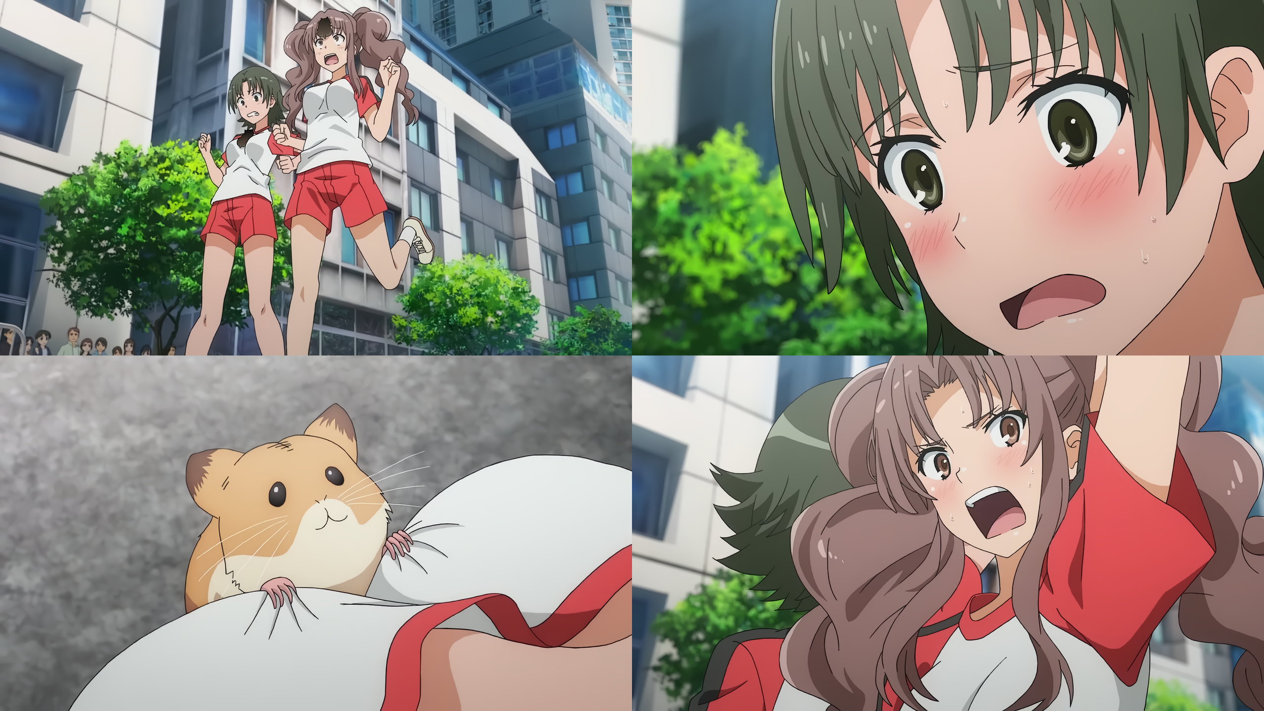 ハムスターに襲われて悶える、藍鈴女子高校選手二人組。