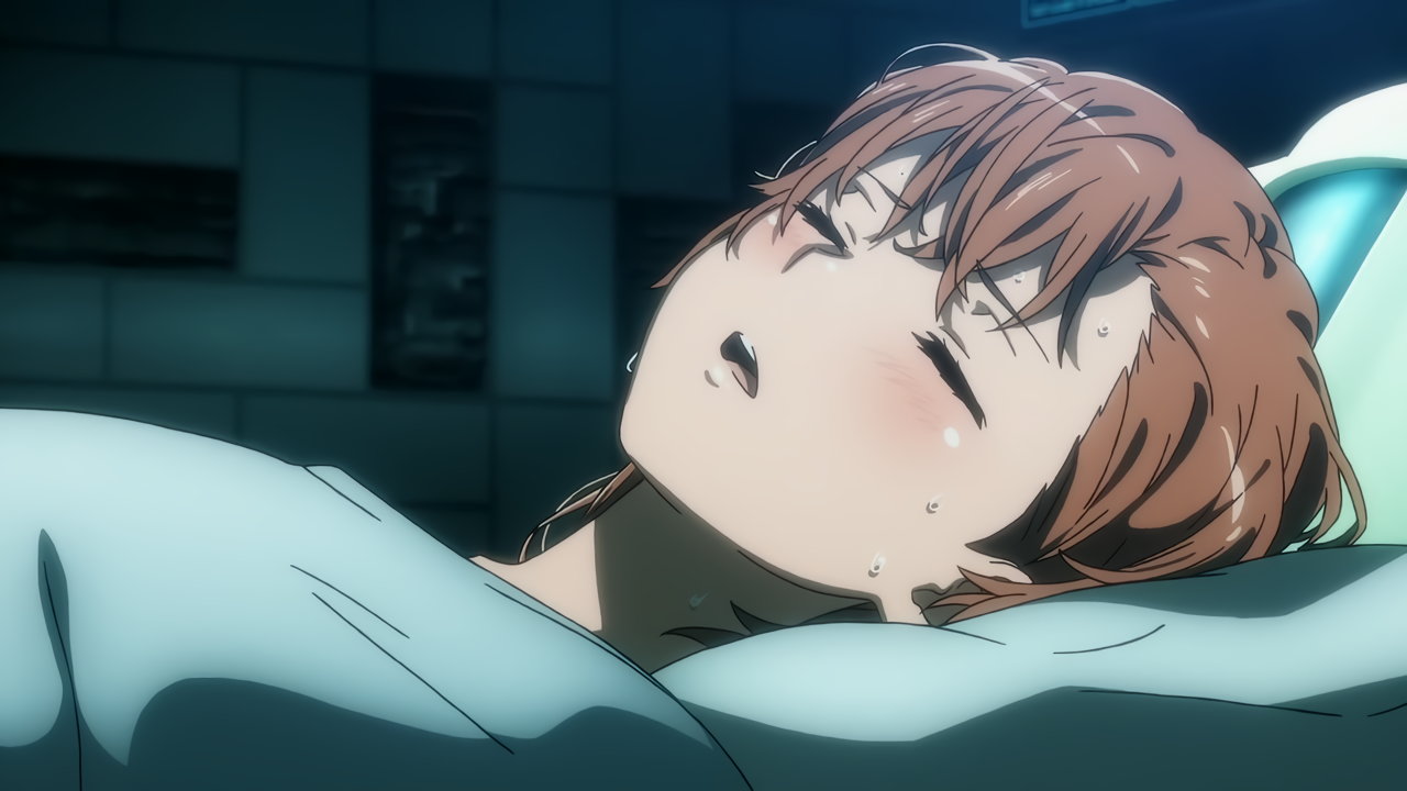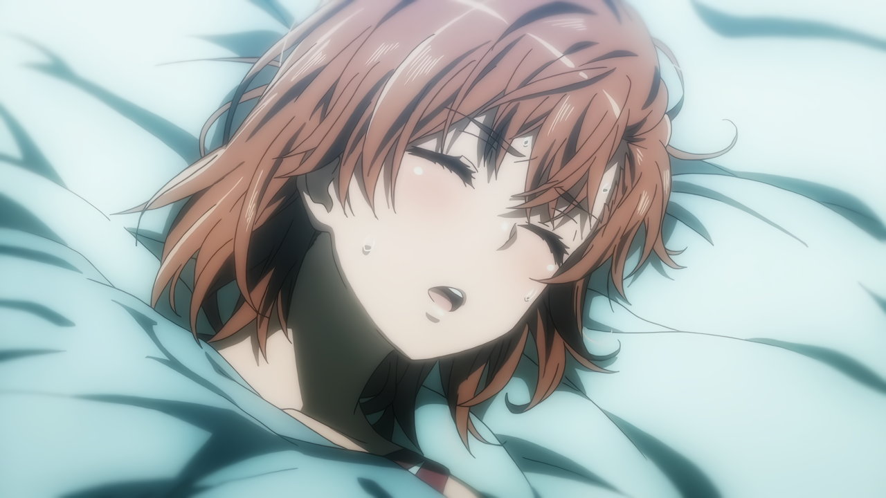 ベッドに寝かされ、発熱発汗赤面し喘ぐ御坂妹。
