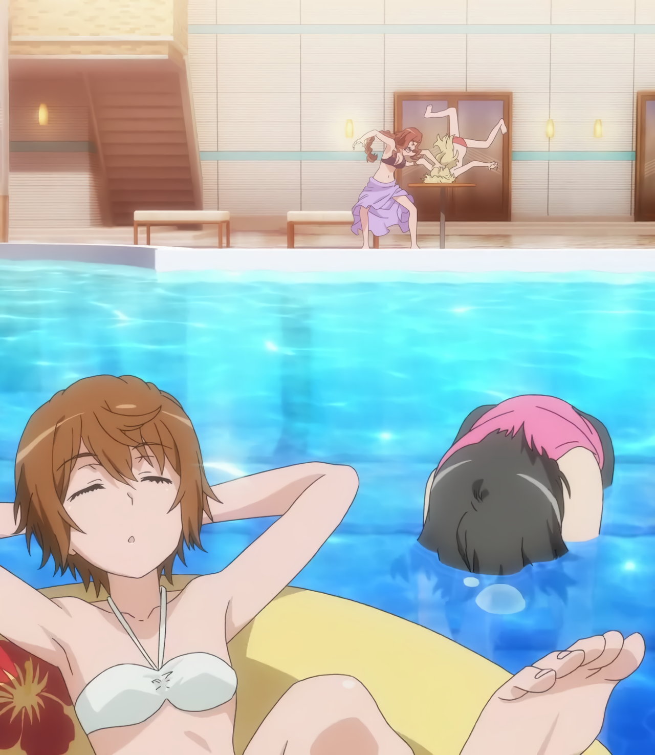 プールで水着姿の沈利/最愛/フレンダ/理后。