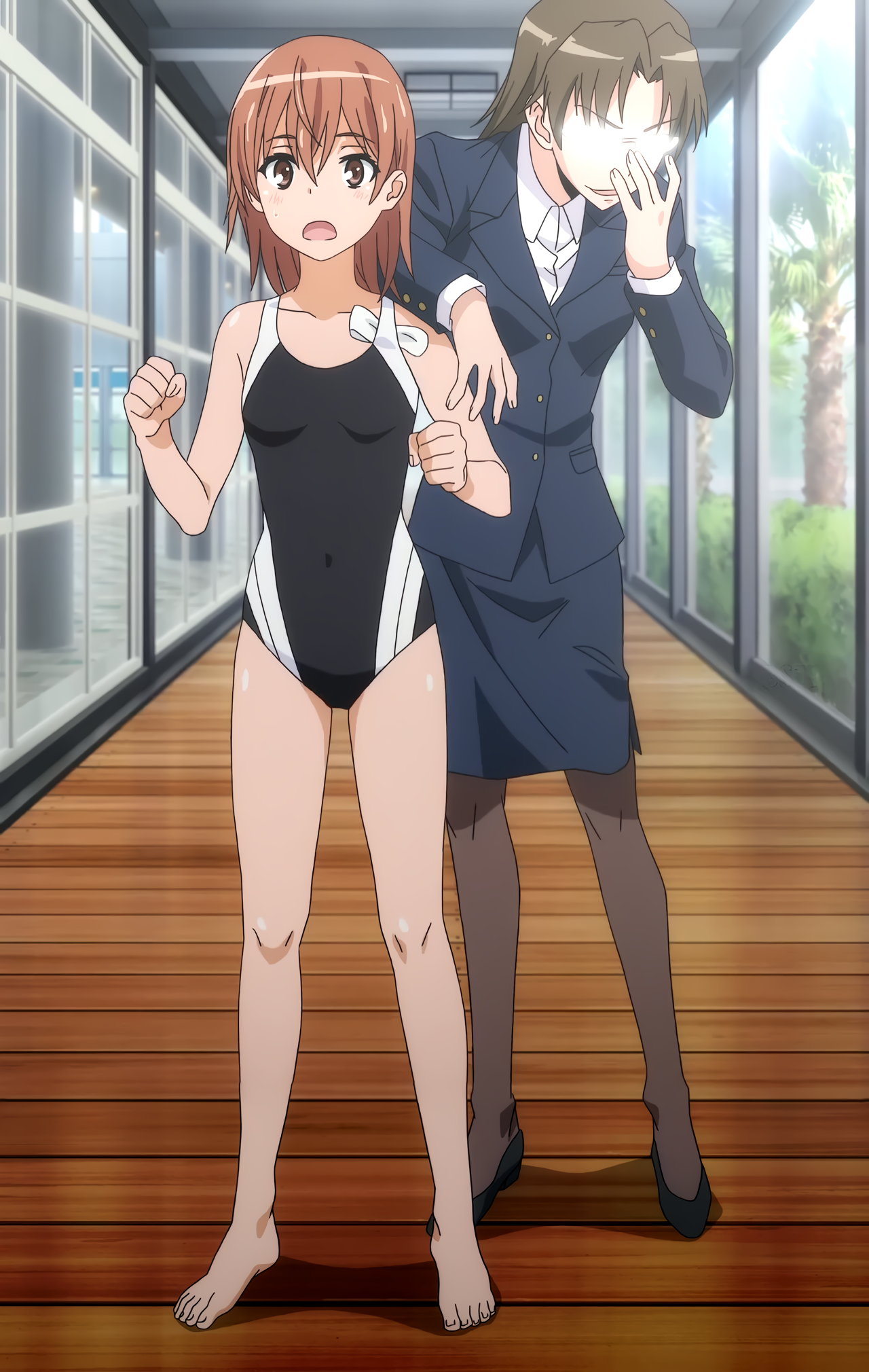 スクール水着姿の美琴と潤子。