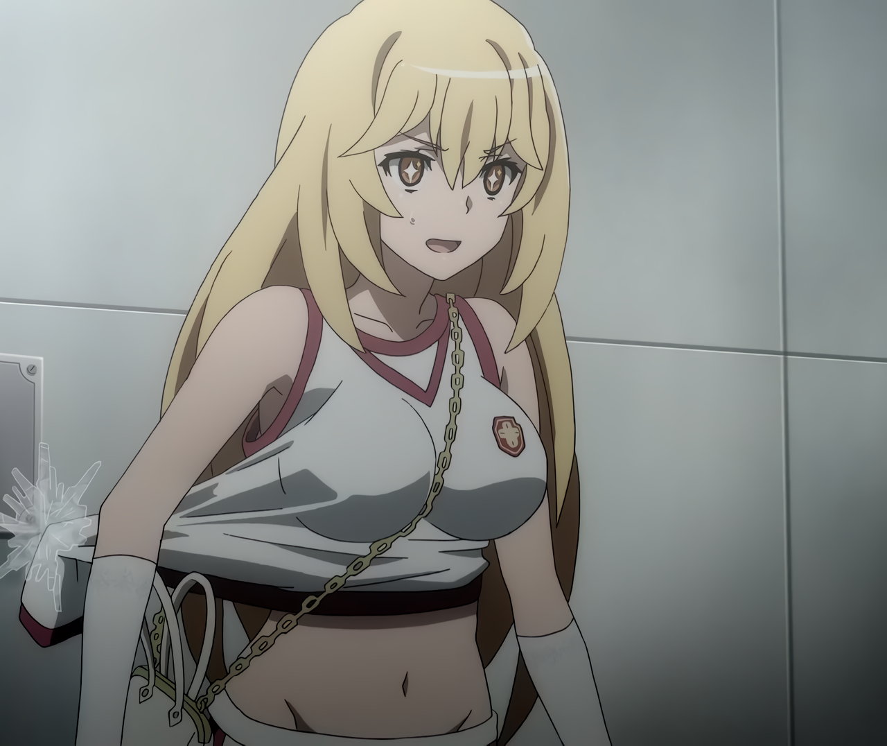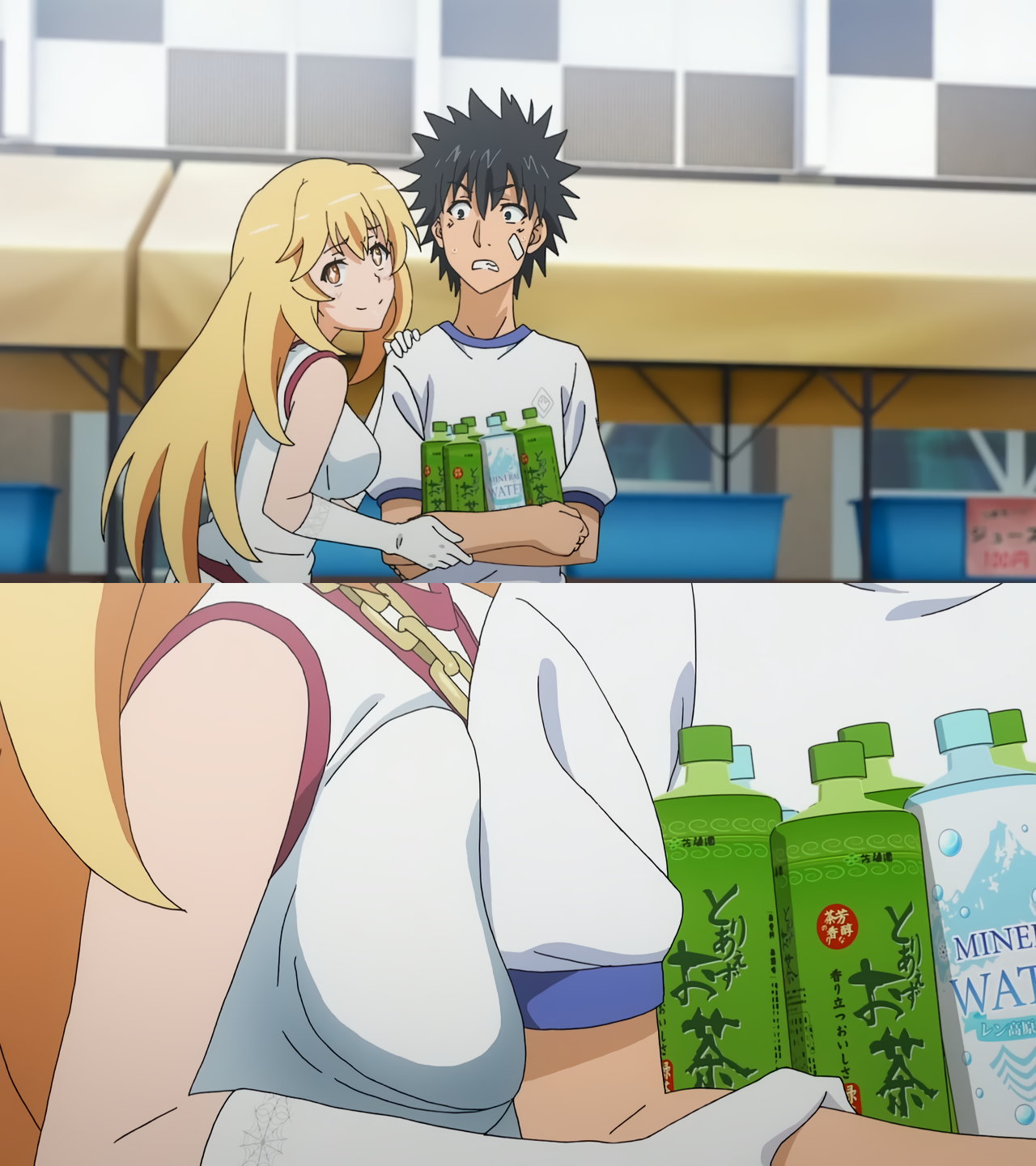 操祈の巨乳に目を奪われる当麻。