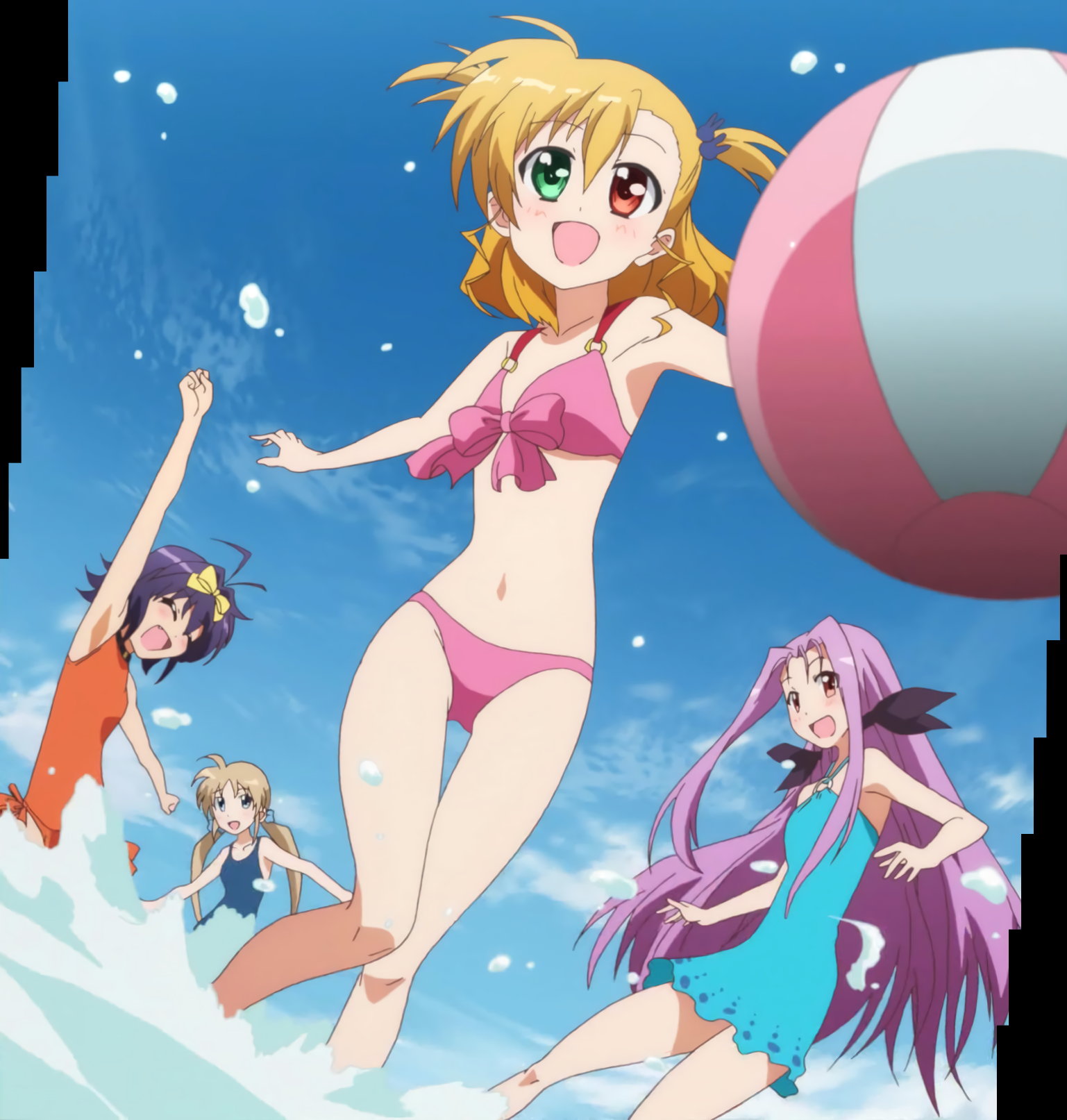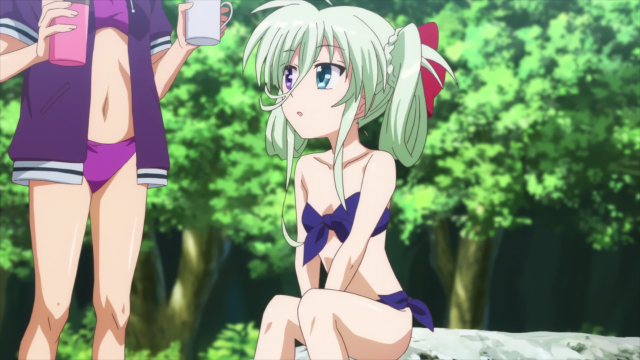 水着姿で川遊び中のアインハルト、ヴィヴィオ、リオ、コロナ、ルーテシア。