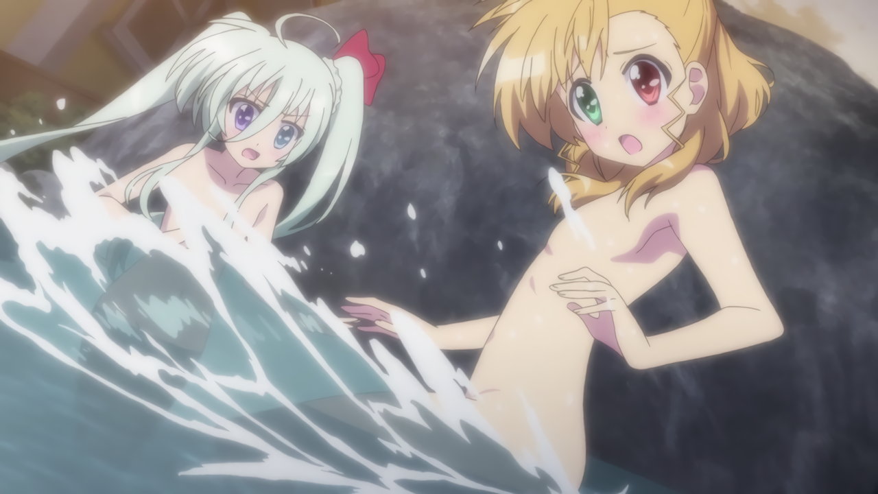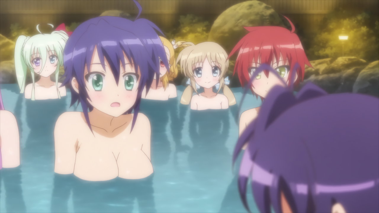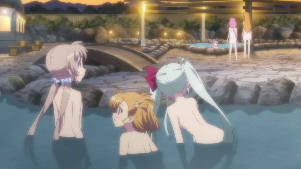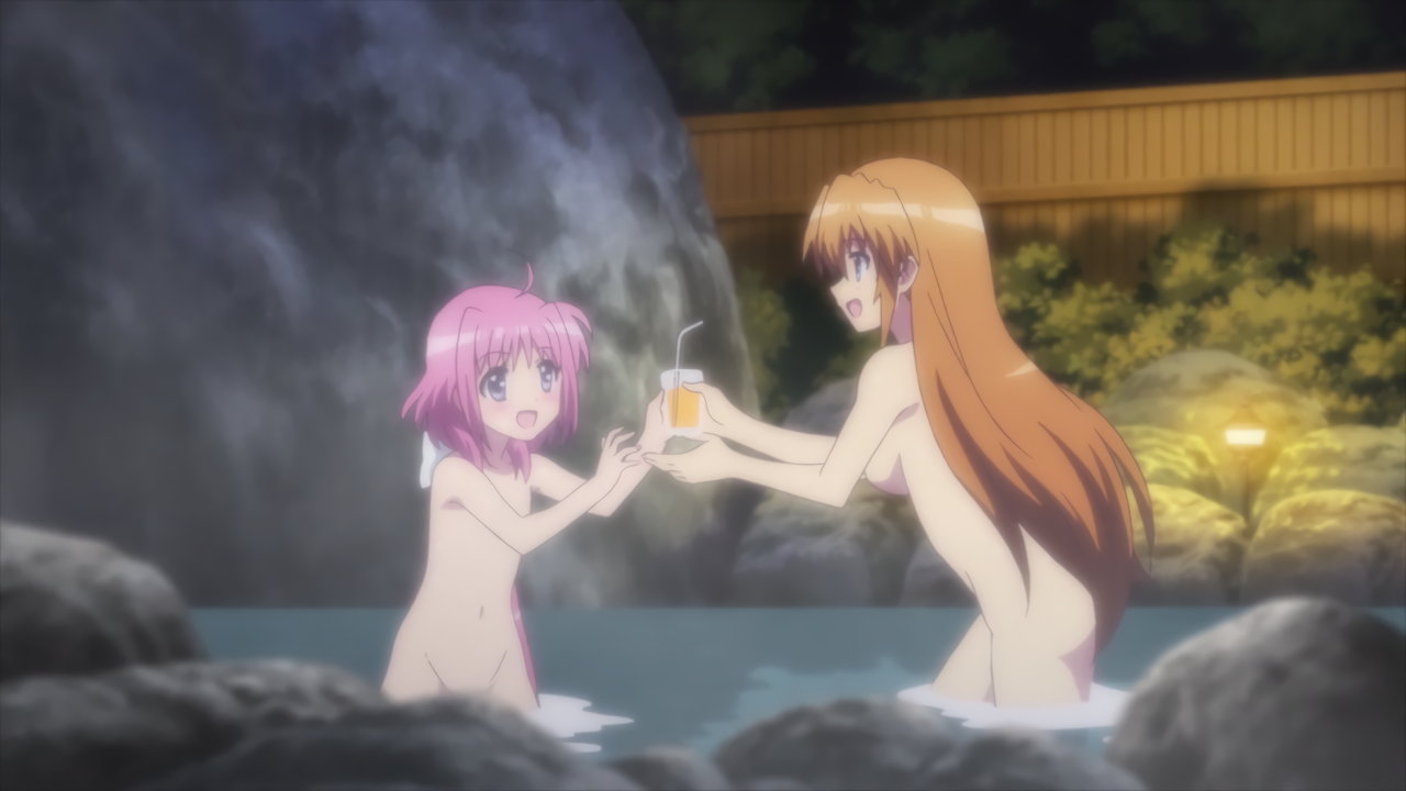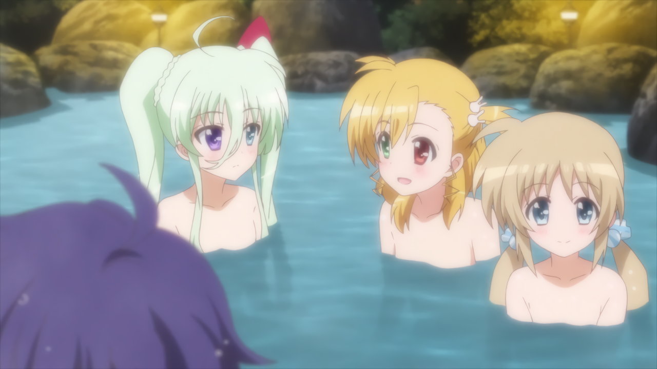 温泉入浴中のヴィヴィオ、アインハルト、リオ、コロナ、キャロ、ティアナ、スバル、ノーヴェ、ルーテシア。