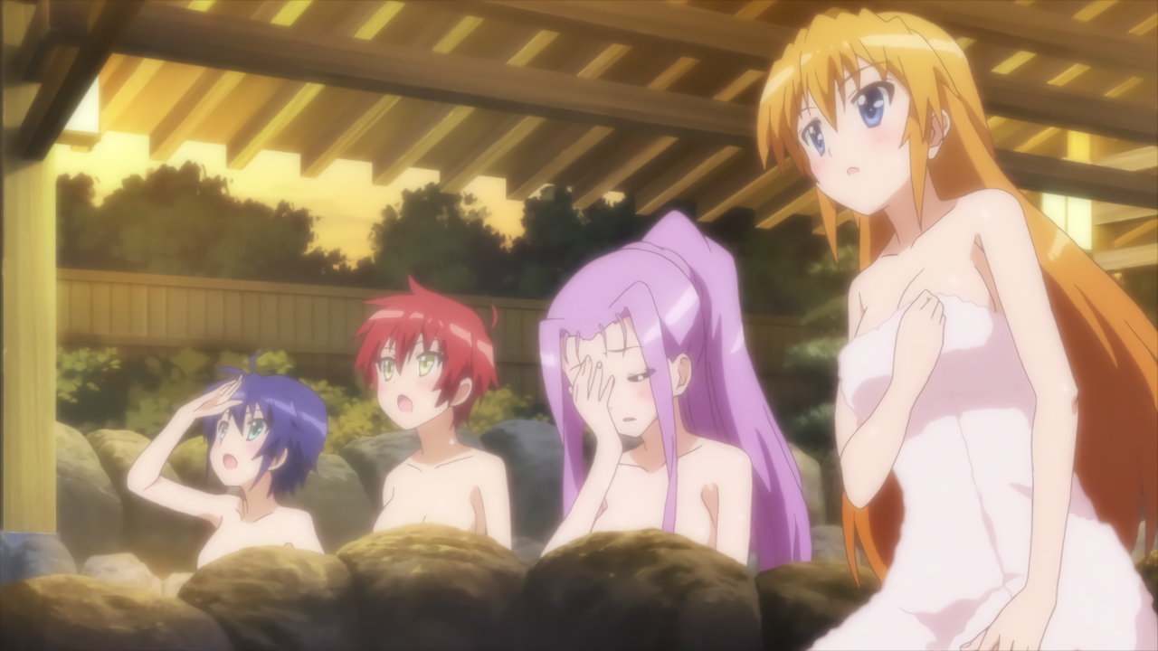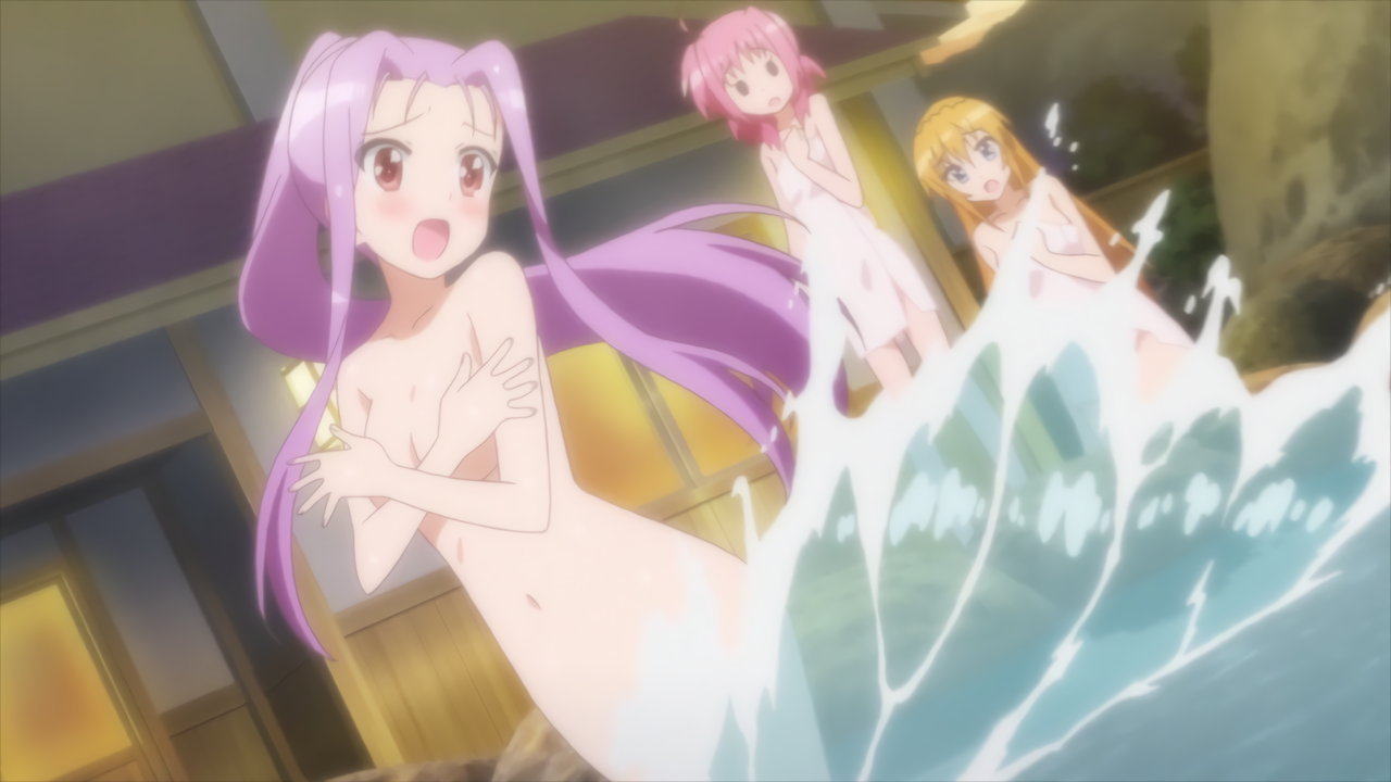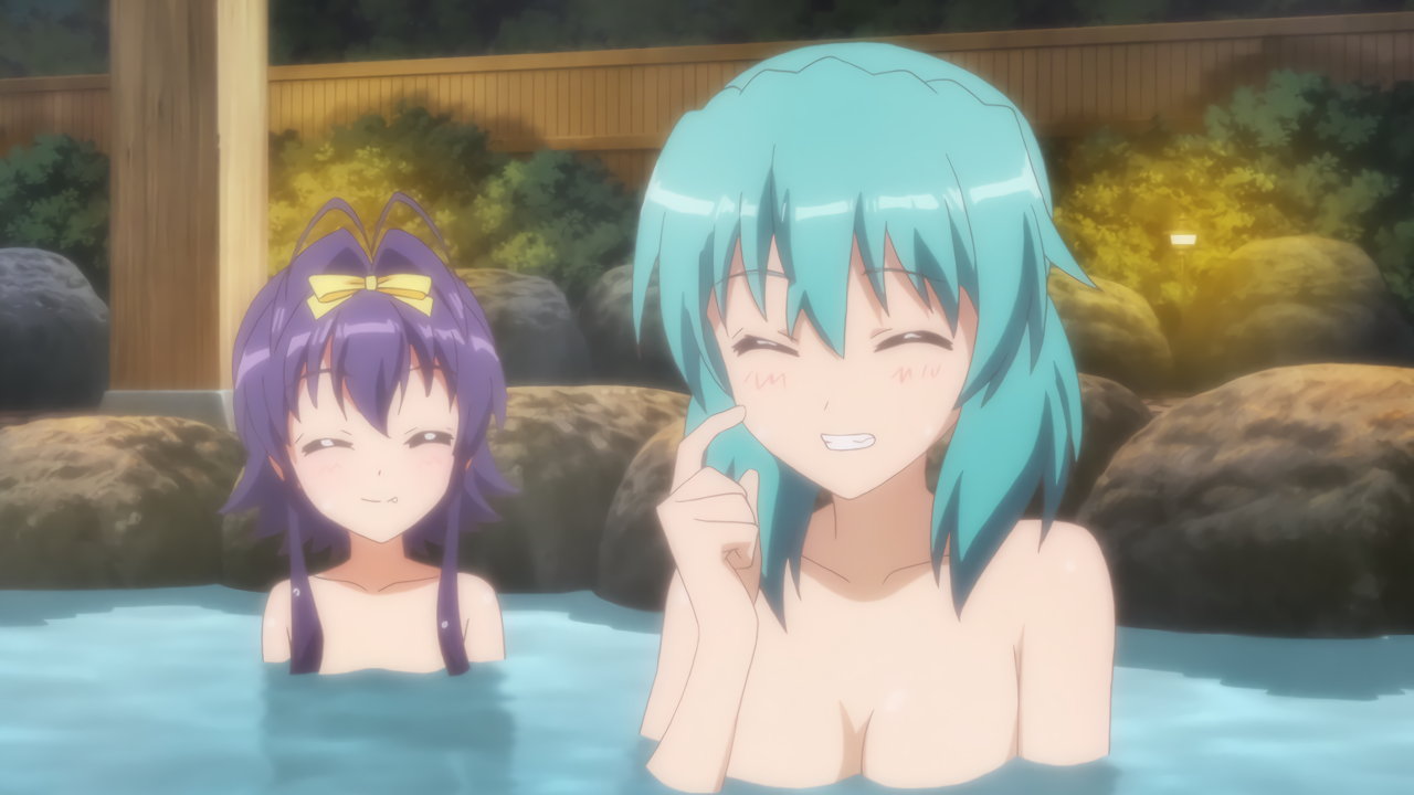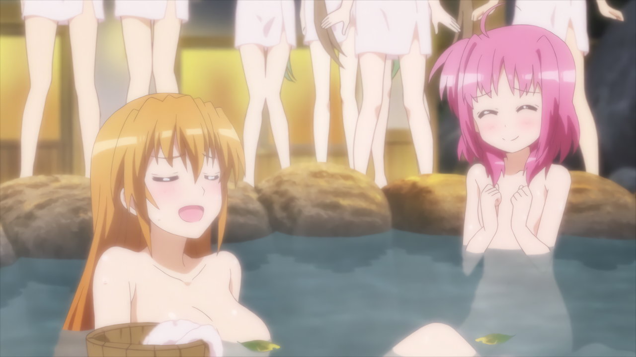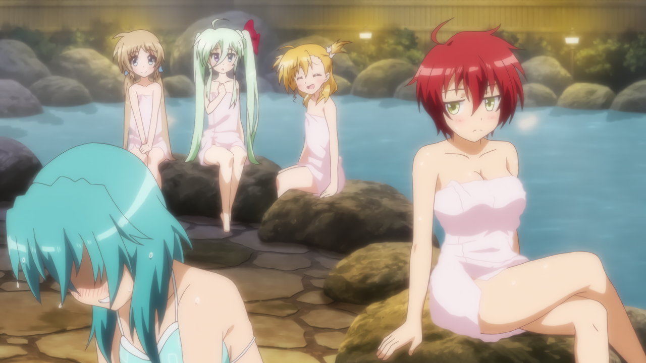 温泉入浴中のヴィヴィオ、アインハルト、リオ、コロナ、キャロ、ティアナ、スバル、ノーヴェ、ルーテシア。