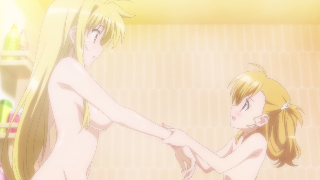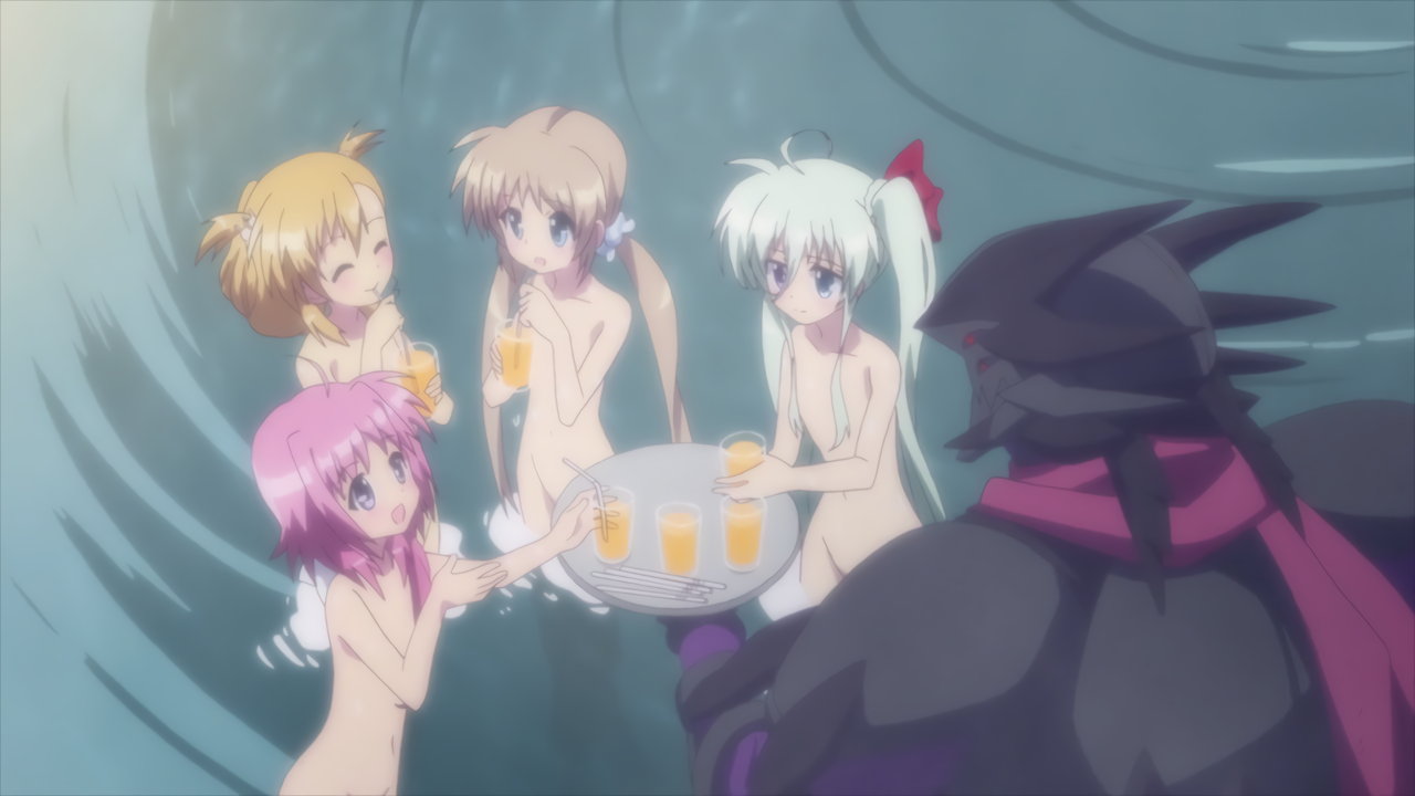 なのは、スバル、ヴィヴィオ、リオ、エリオ、ルーテシア、フェイト、ノーヴェ、アインハルト、コロナ、キャロ、ティアナの全裸変身シーン。