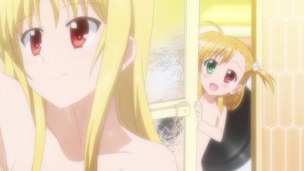 入浴中のフェイト、ヴィヴィオ、なのは。