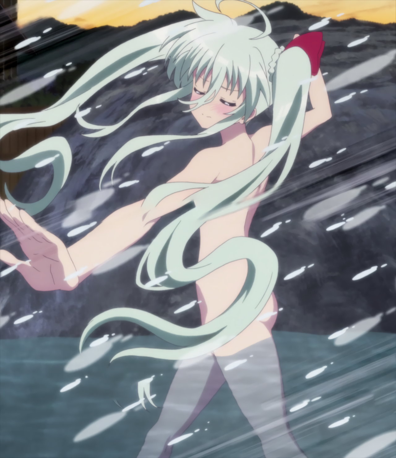 温泉入浴中のルーテシア。