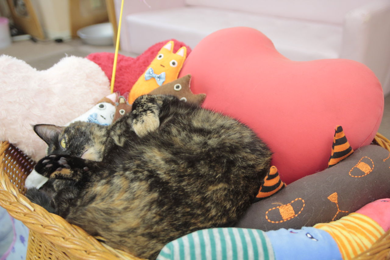 ふわふわいっぱいに囲まれてぐっすりです。