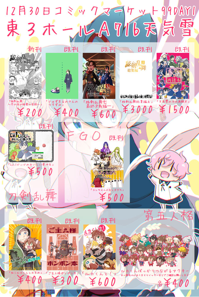 C99木曜日東地区A71b「天気雪」スペース頂いてます! 新刊は豚剣乱舞のペラ本です! 当日はどうぞよしなにです! webcatalog-free.circle.ms/Circle/15704709 #C99WebCatalog