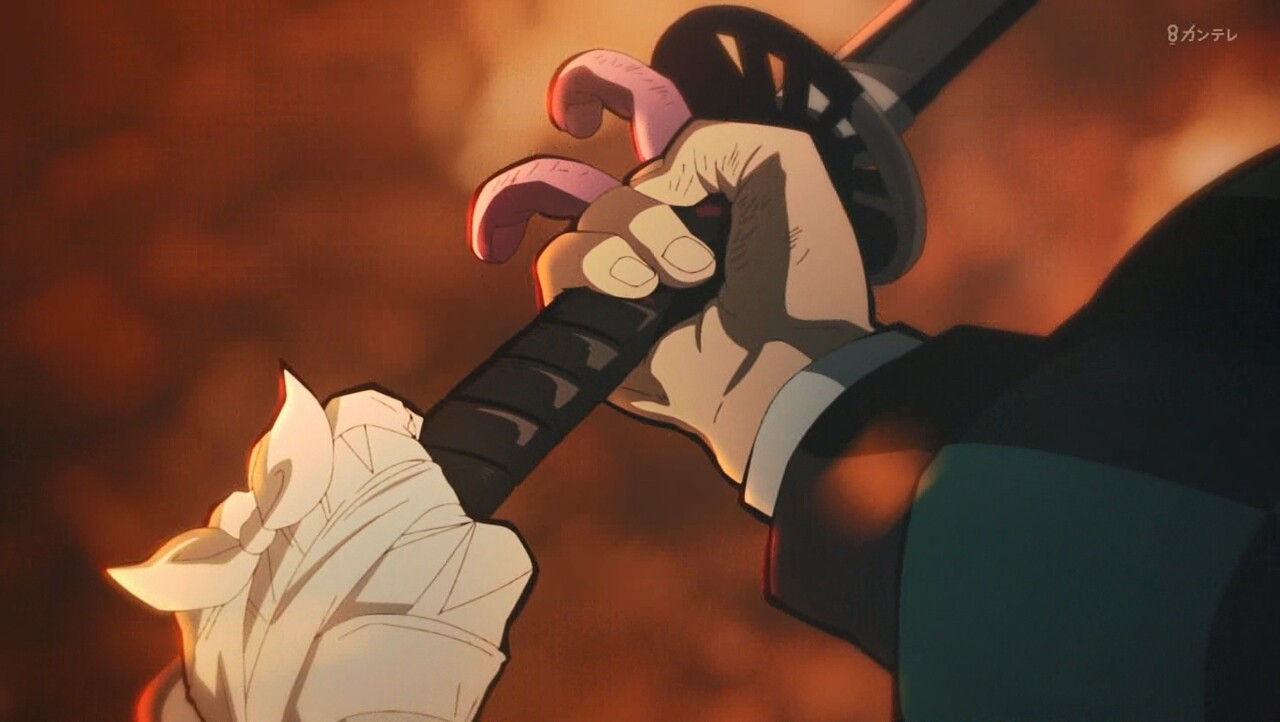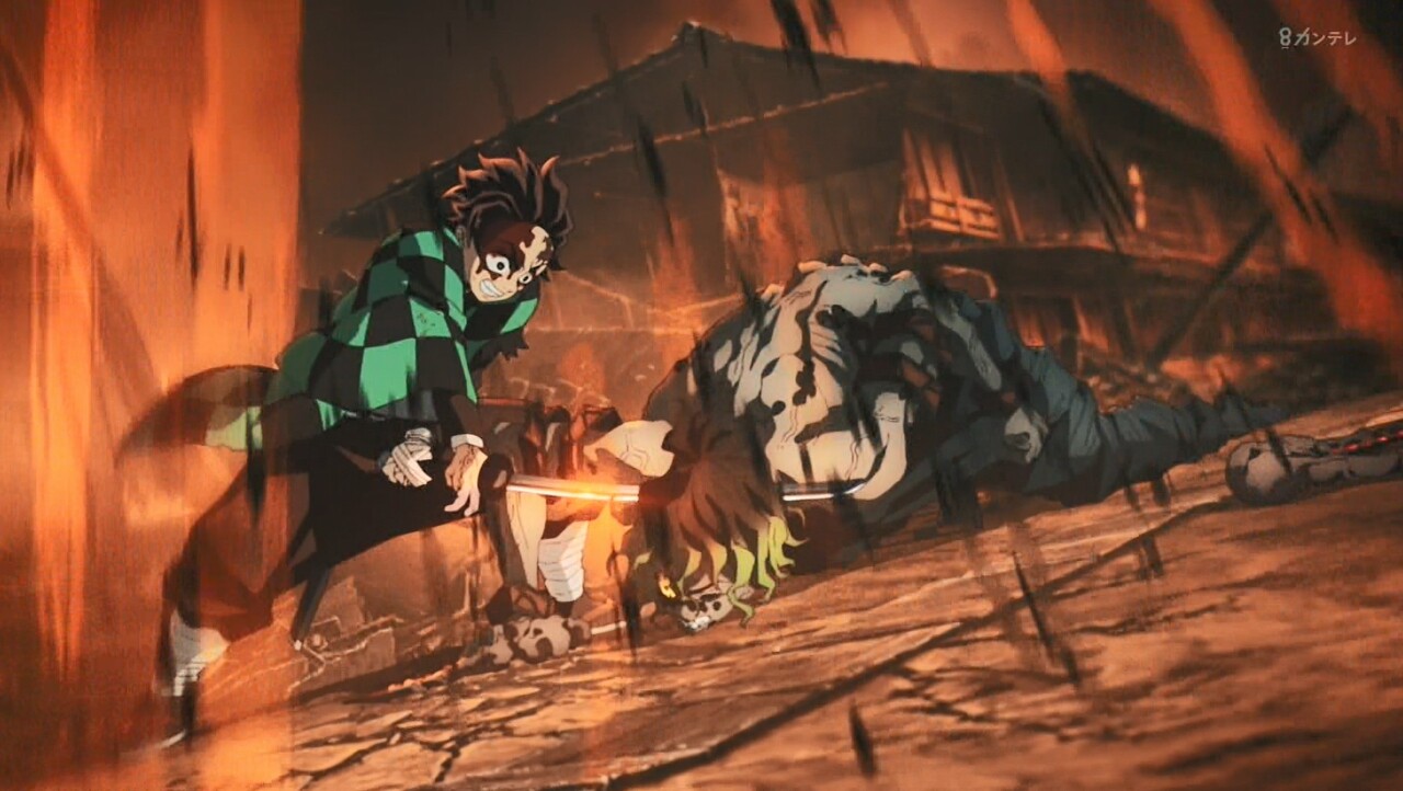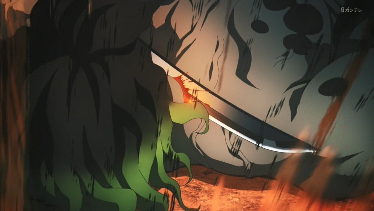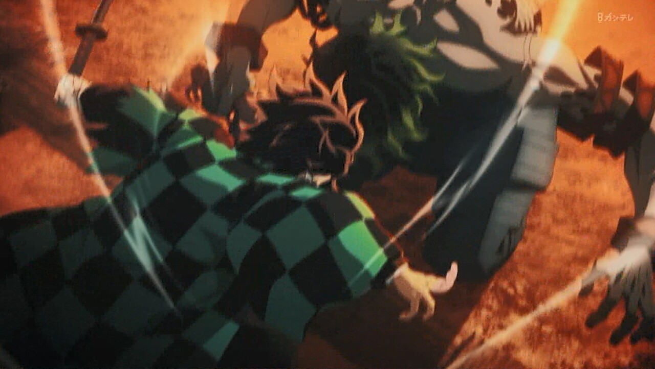 炭(何で俺を殺さない?何だ?腕が痺れてる。まだ力が入らない。今首を狙っても斬れない…)