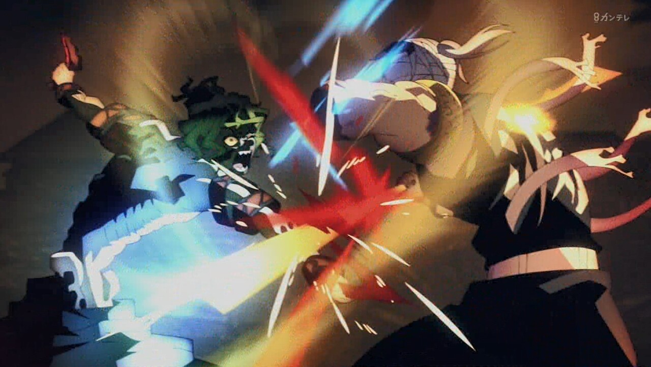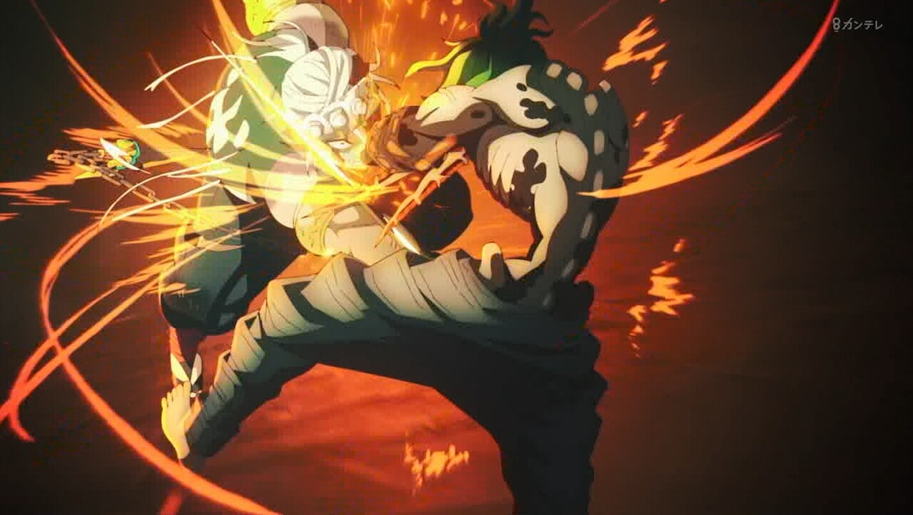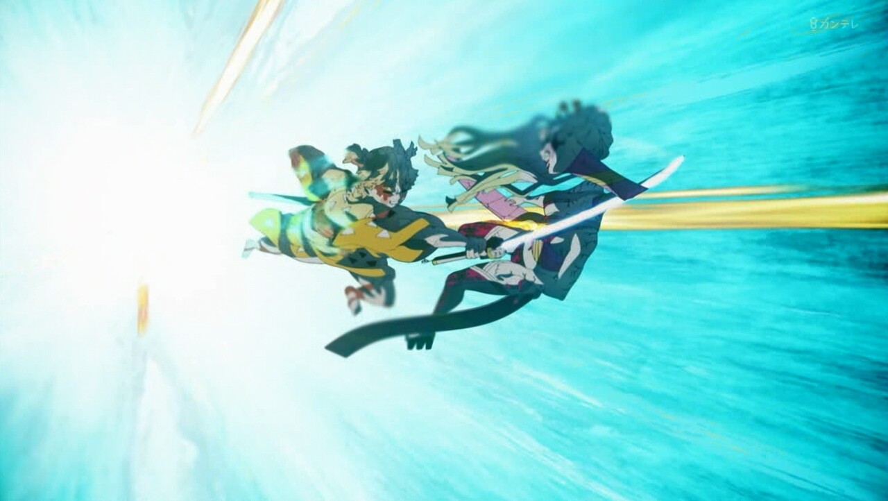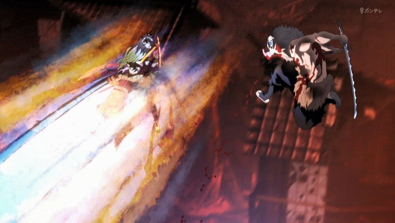 - 素晴らしい熱い戦闘でした。宇髄さんの最後の手段「譜面」だなんて、すごいです。「譜面完成した!!勝ちに行くぞー!!」宇髄さん超カッコ良かった。いいリズムな戦い方です。善逸もカッコ良かったです。新技「神速」一直線なビームすごい技です。炭次郎もアザ変化になった。