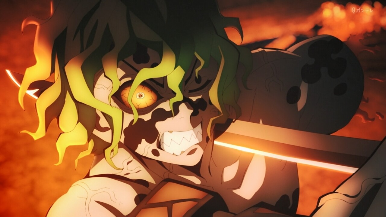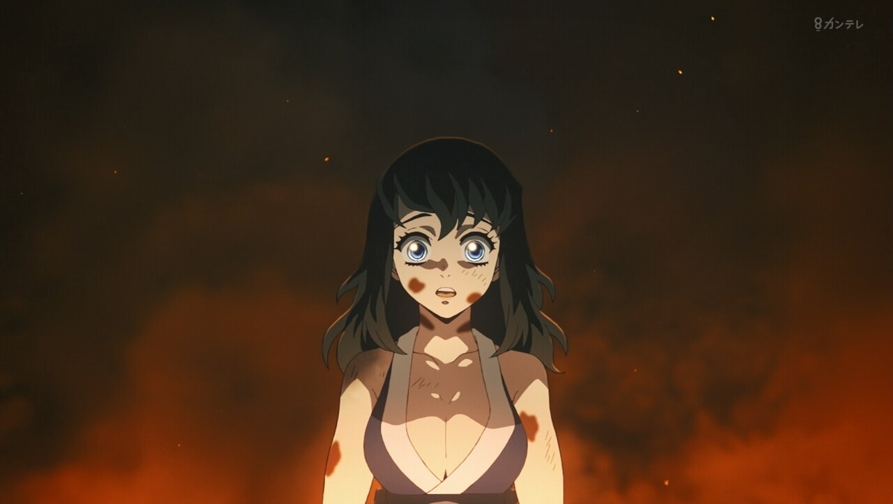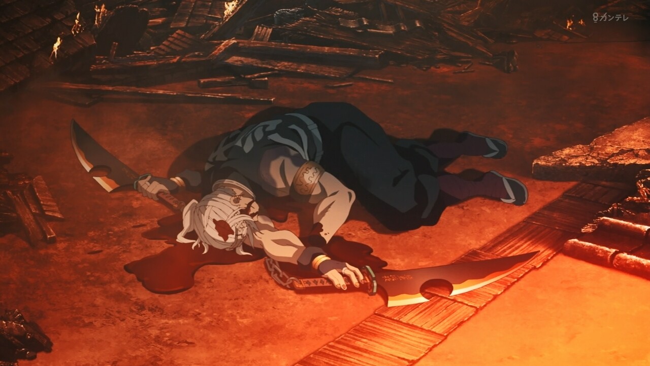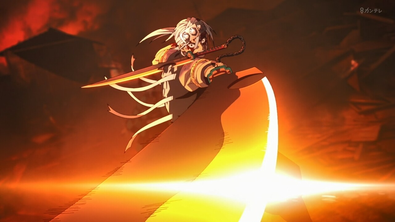 すごい100倍なパワーアップです。宇髄さん生きて良かったです。でも、左目失った。ラスト、みんな無事なのかな?吉原、火の海と焼け野原になった。宇髄さんの大切な町「吉原遊郭」完全に黒い町になった。最終話、みんな無事を祈ってほしいです。