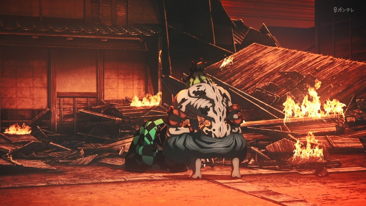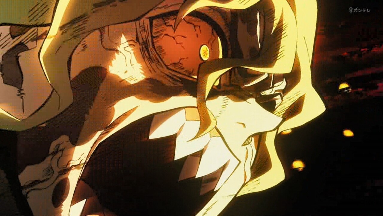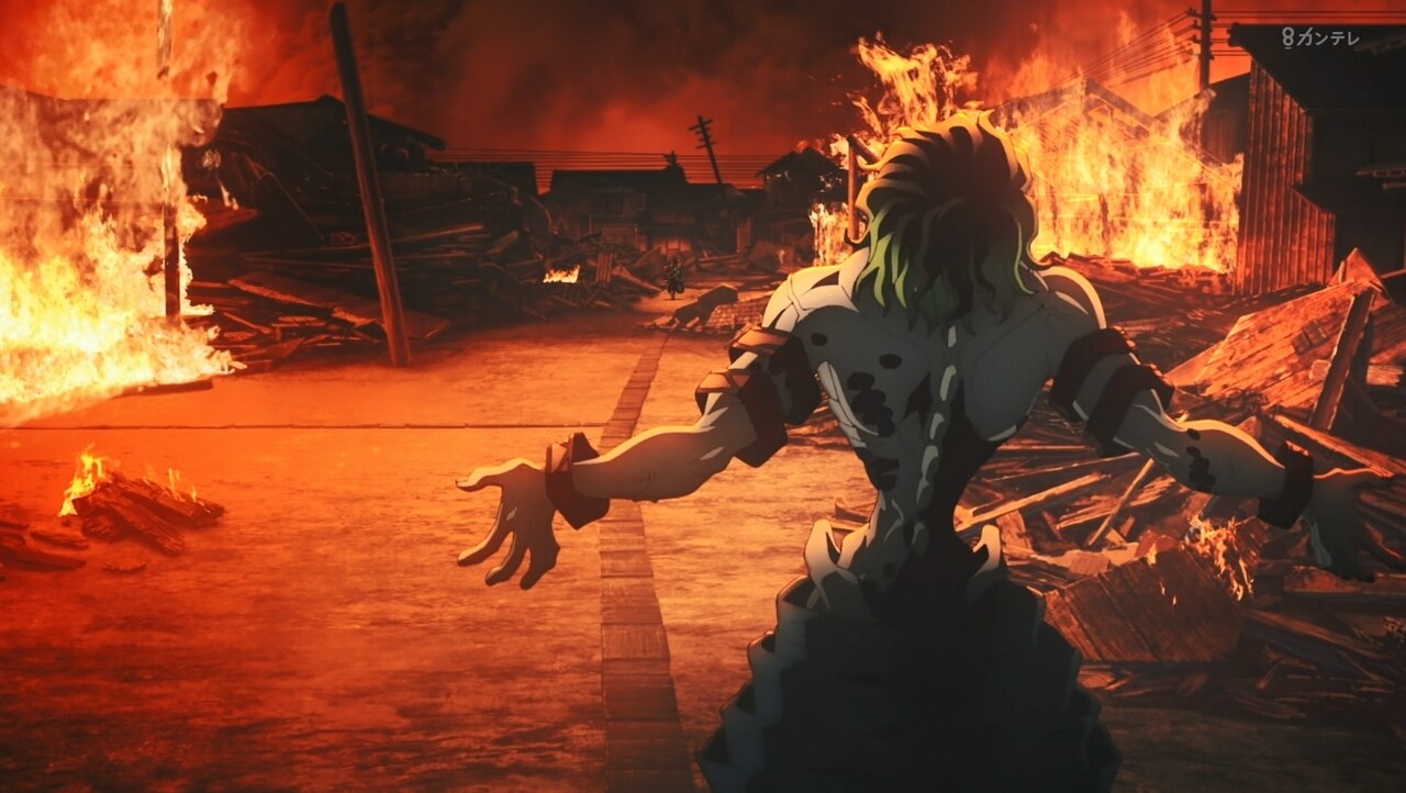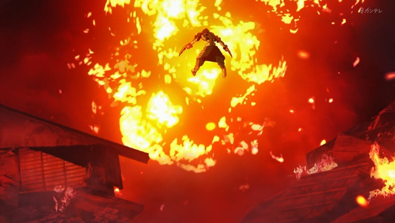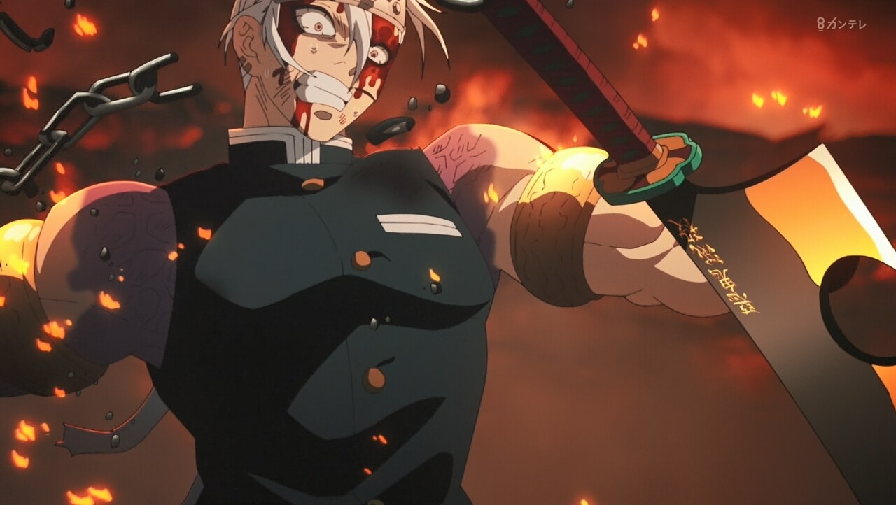すごい100倍なパワーアップです。宇髄さん生きて良かったです。でも、左目失った。ラスト、みんな無事なのかな?吉原、火の海と焼け野原になった。宇髄さんの大切な町「吉原遊郭」完全に黒い町になった。最終話、みんな無事を祈ってほしいです。