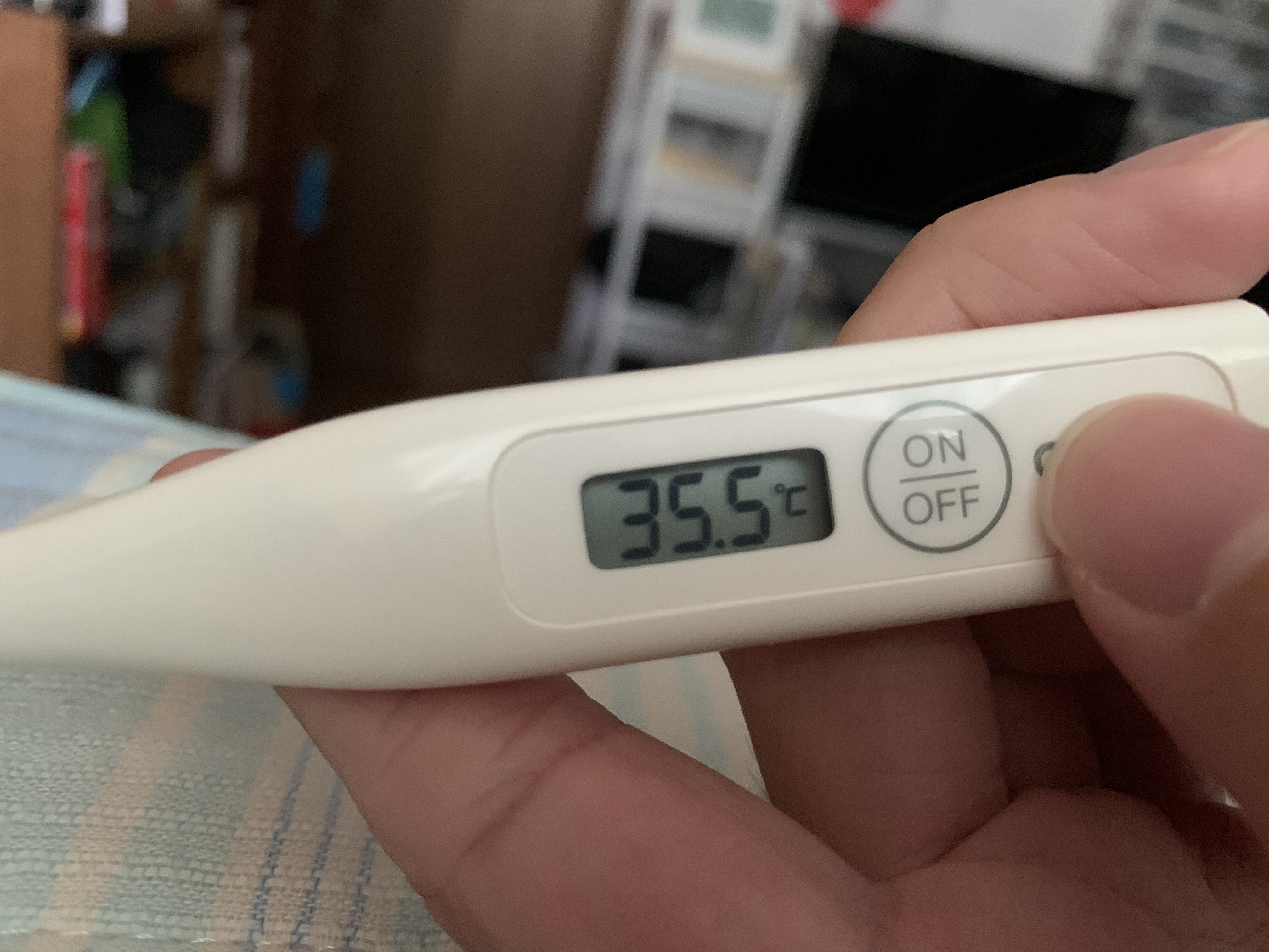 低めであるが、だいたいこれが我が平熱である。35℃台後半~36℃ちょいあたりが普通で、37℃を超えてくるとだいたい体調が悪いときである。