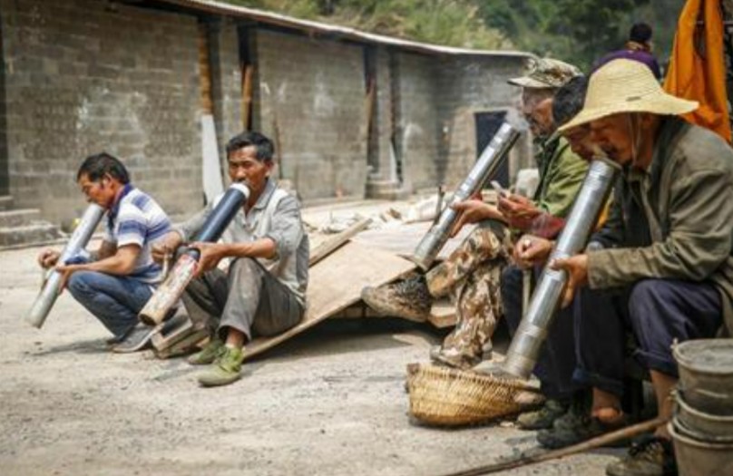 この男性が持っているのは雲南でよく見る水たばこですね。 『雲南で盛んな水たばこ』