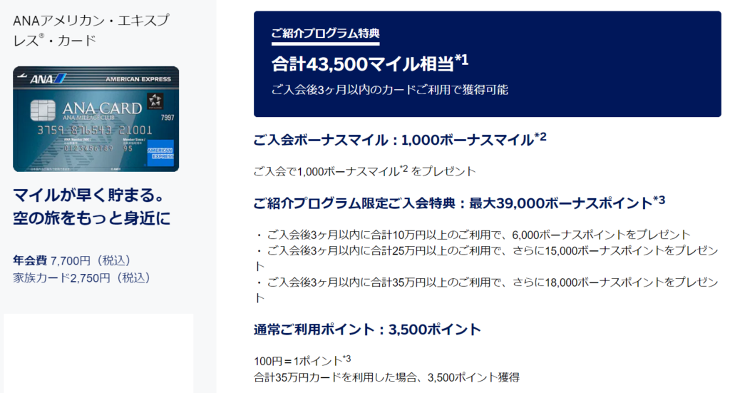- 通常入会ボーナスマイル1,000(これは通常の入会ボーナスマイルでANAマイルとして加算)