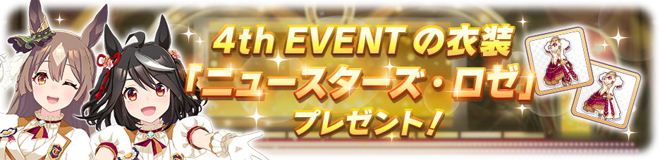 4th EVENT「SPECIAL DREAMERS!!」の開催を記念して、イベント出走者が着用する衣装「ニュースターズ・ロゼ」をトレーナーの皆様にお贈りいたしました!
