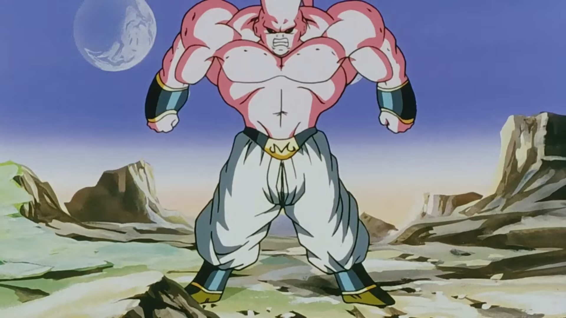 Kid Buu as he prepares to blow up the Earth