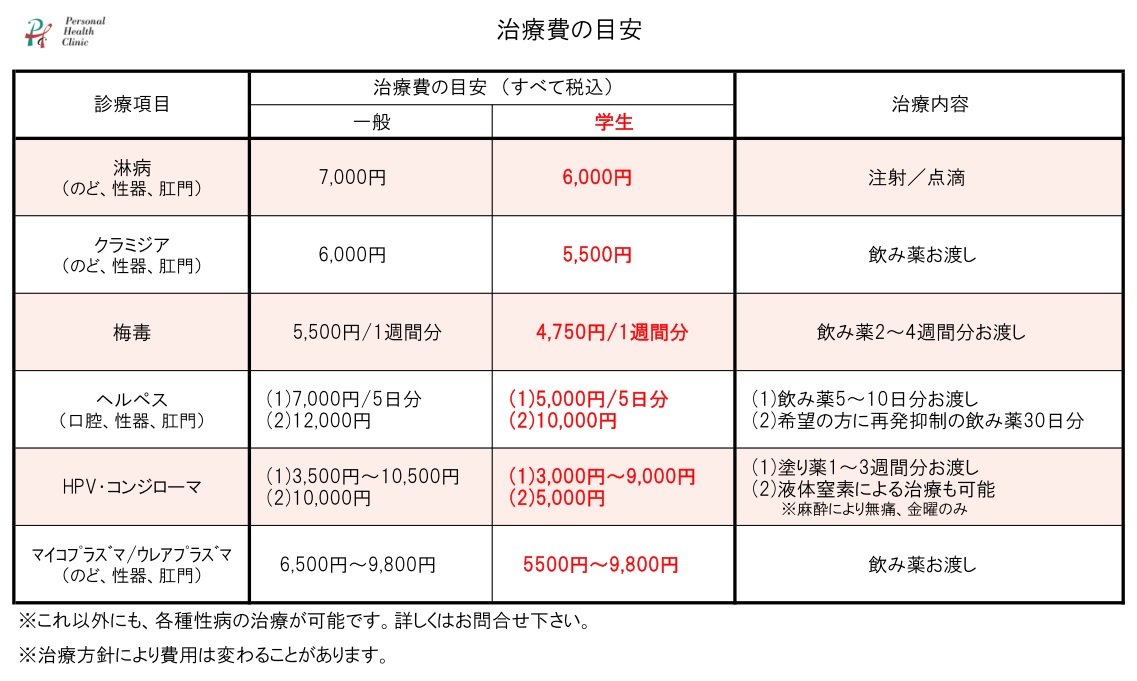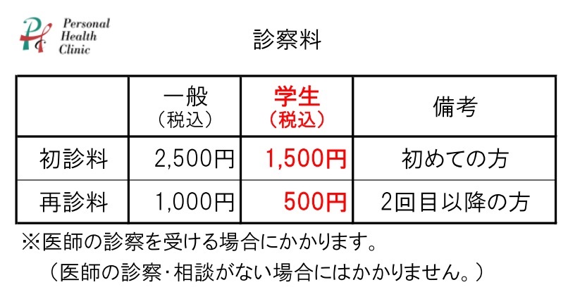 当院では、学生の方でも性病検査・治療が受けやすいように、学生料金を設定しております。