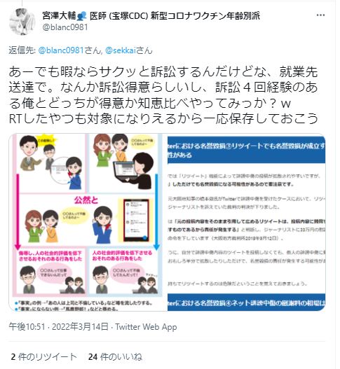 この宮澤とかいう人物はsekkai先生の本名と所属を知って何がしたいんだろう? 私のときみたいに、殺人予告でもするつもりなのだろうか?