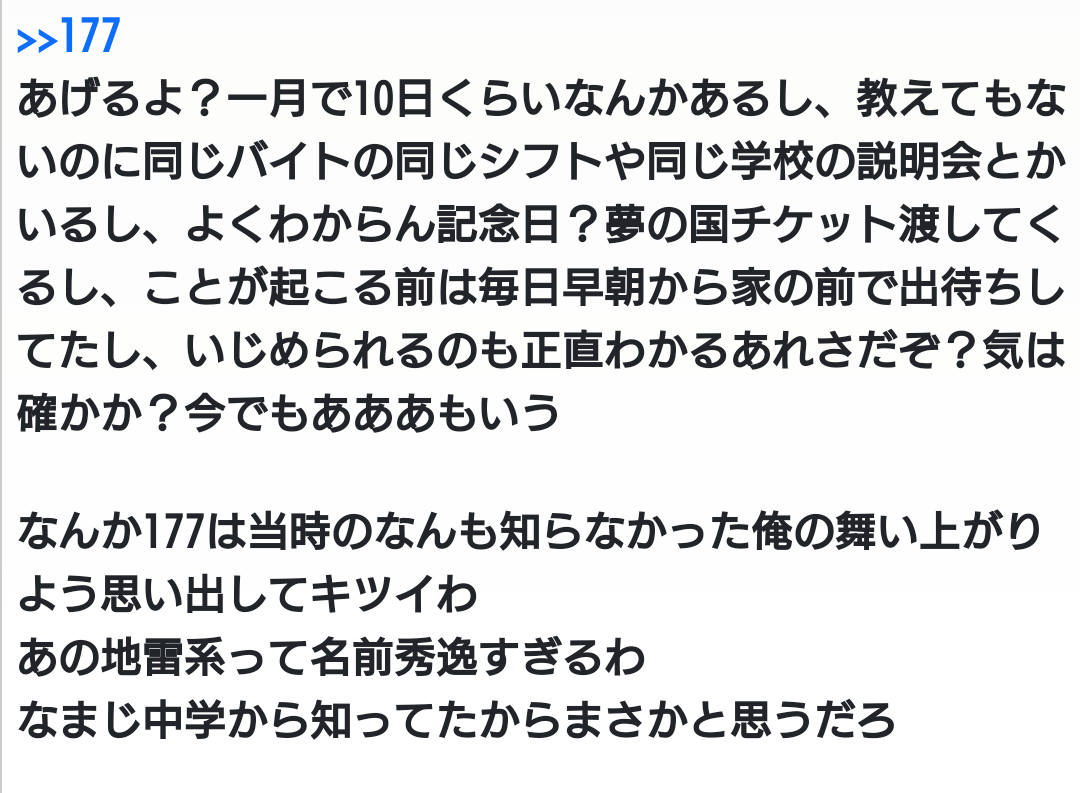そのストーカーの子っていじめられてたんか(>>13)