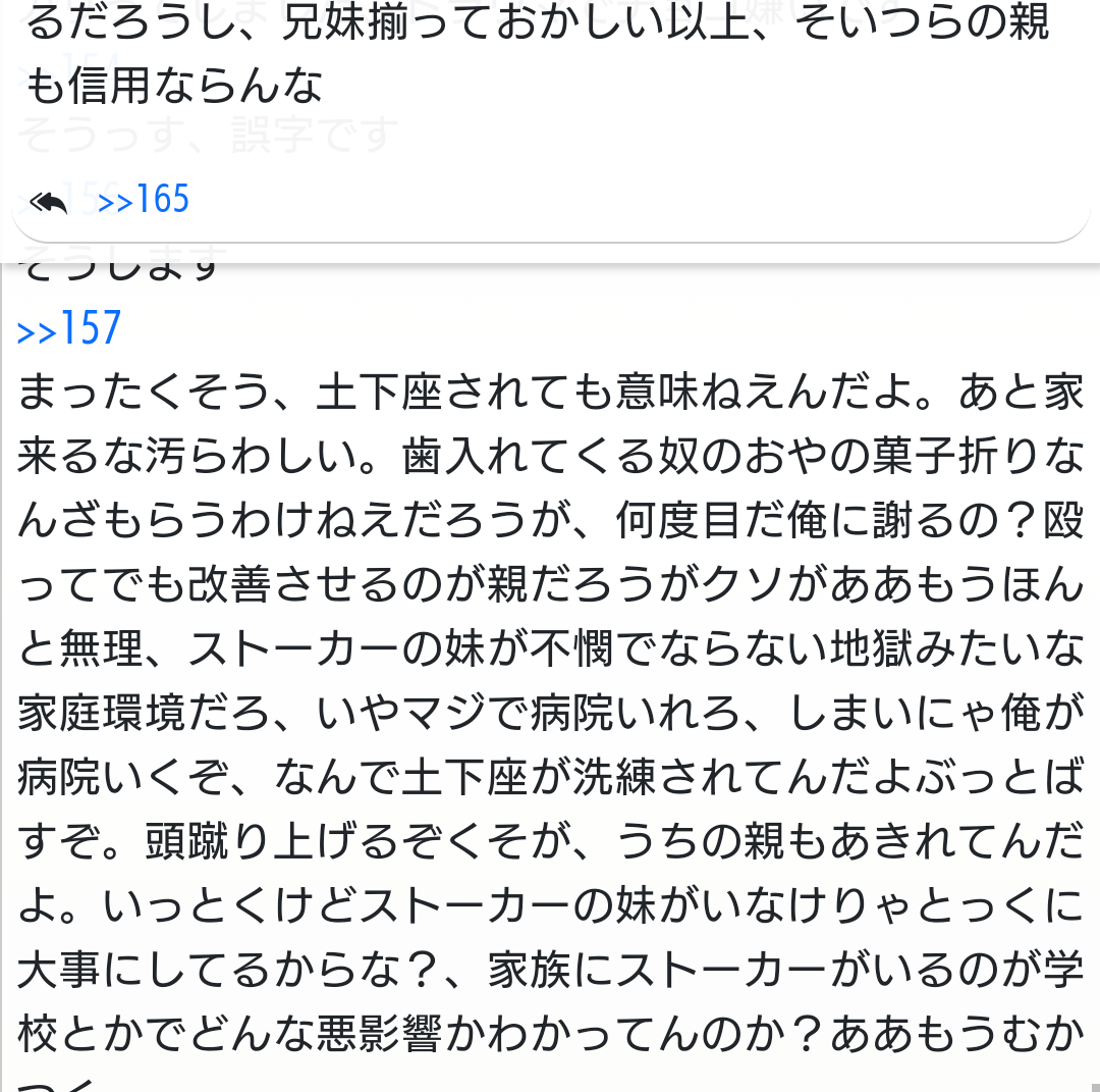 ストーカーは無視しても向こうから関わってくるのがめんどくさいよな - 5二次元好きの匿名さん22/03/19(土) 02:29:15