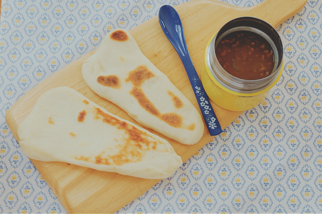朝捏ねて焼いたナンとカレー!