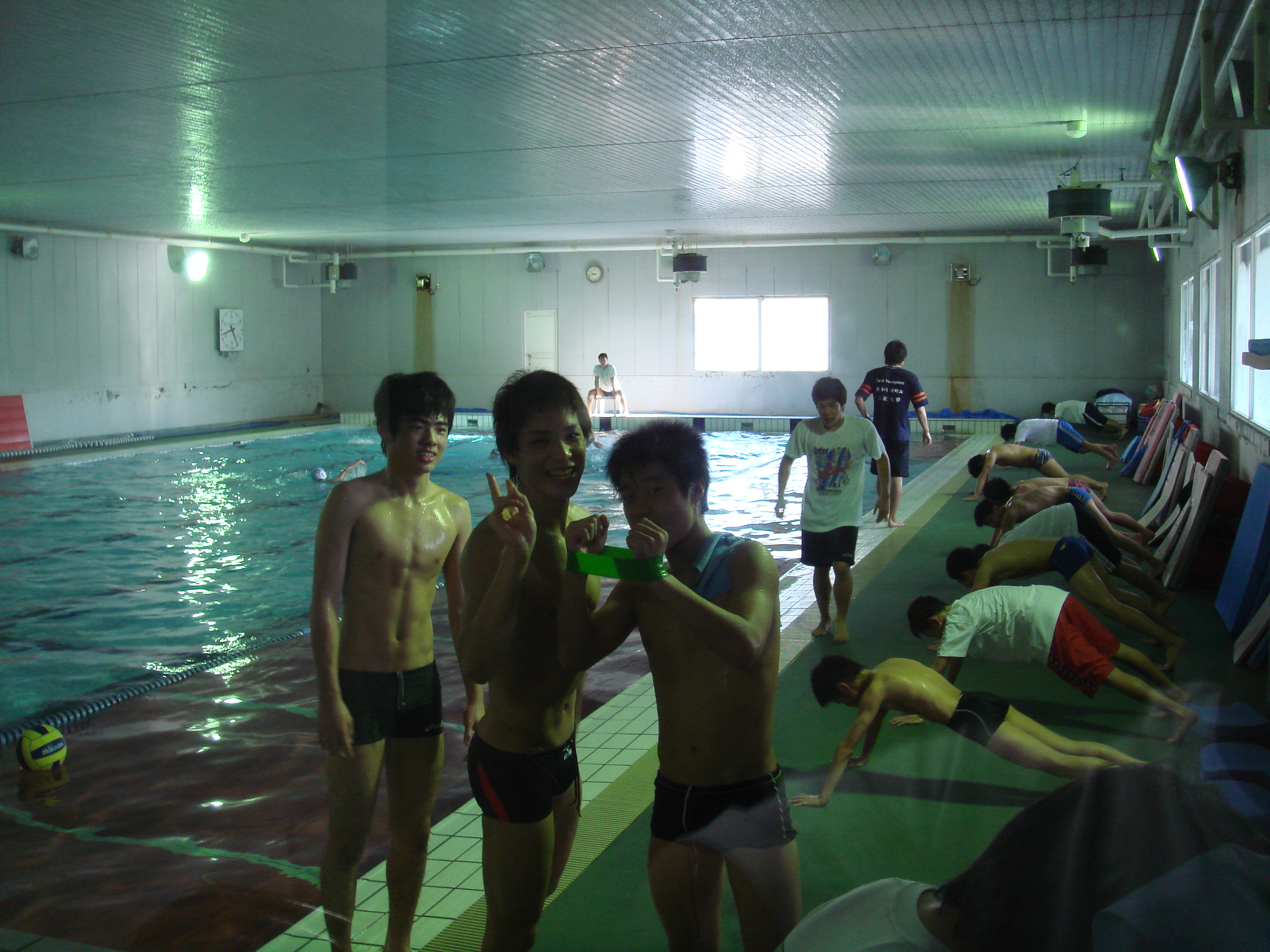 練習が出来ないと県営プールへ泳ぎに来た選手達を捕まえて一緒に