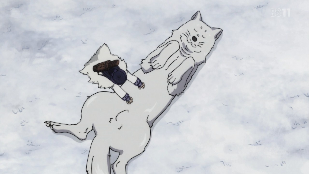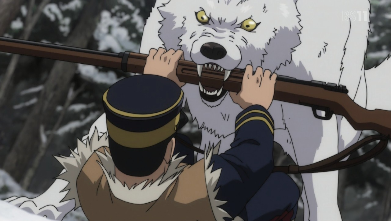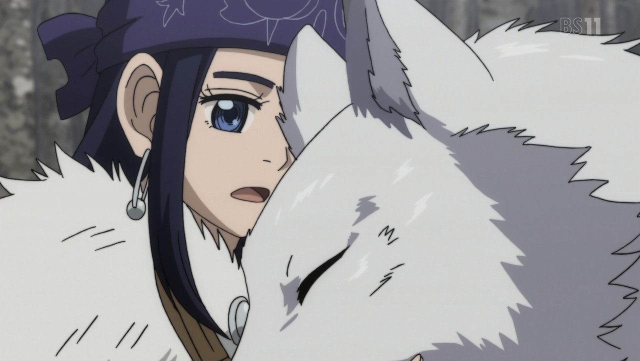 『アシリパさん!よかった無事だったか。お、あの時の白い狼。静かにしてろよー。アシリパさん達に見つかるぞー』