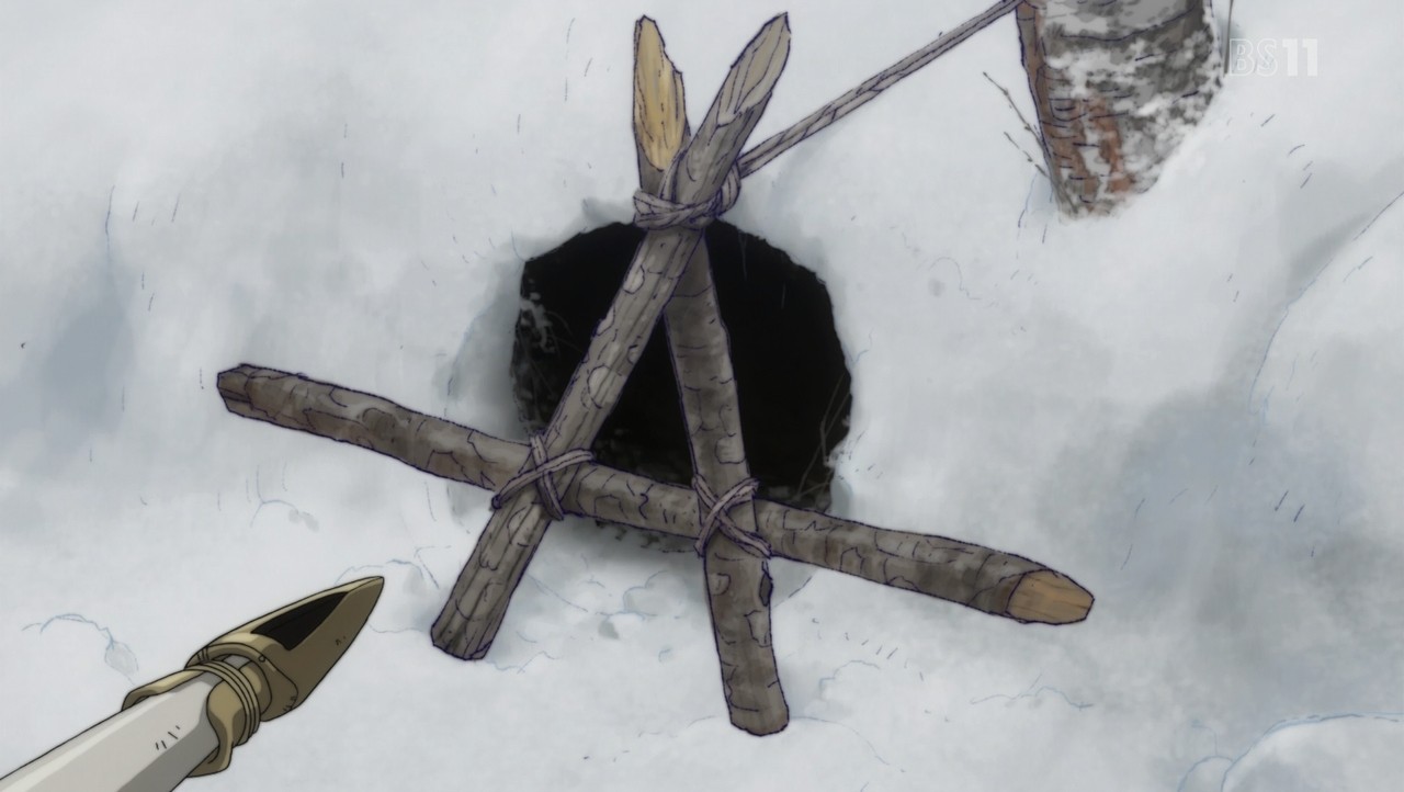 アシリパ『穴の入り口に杭を打って塞ぐ。警戒した熊が杭の隙間から顔を出したら毒矢を撃つ』
