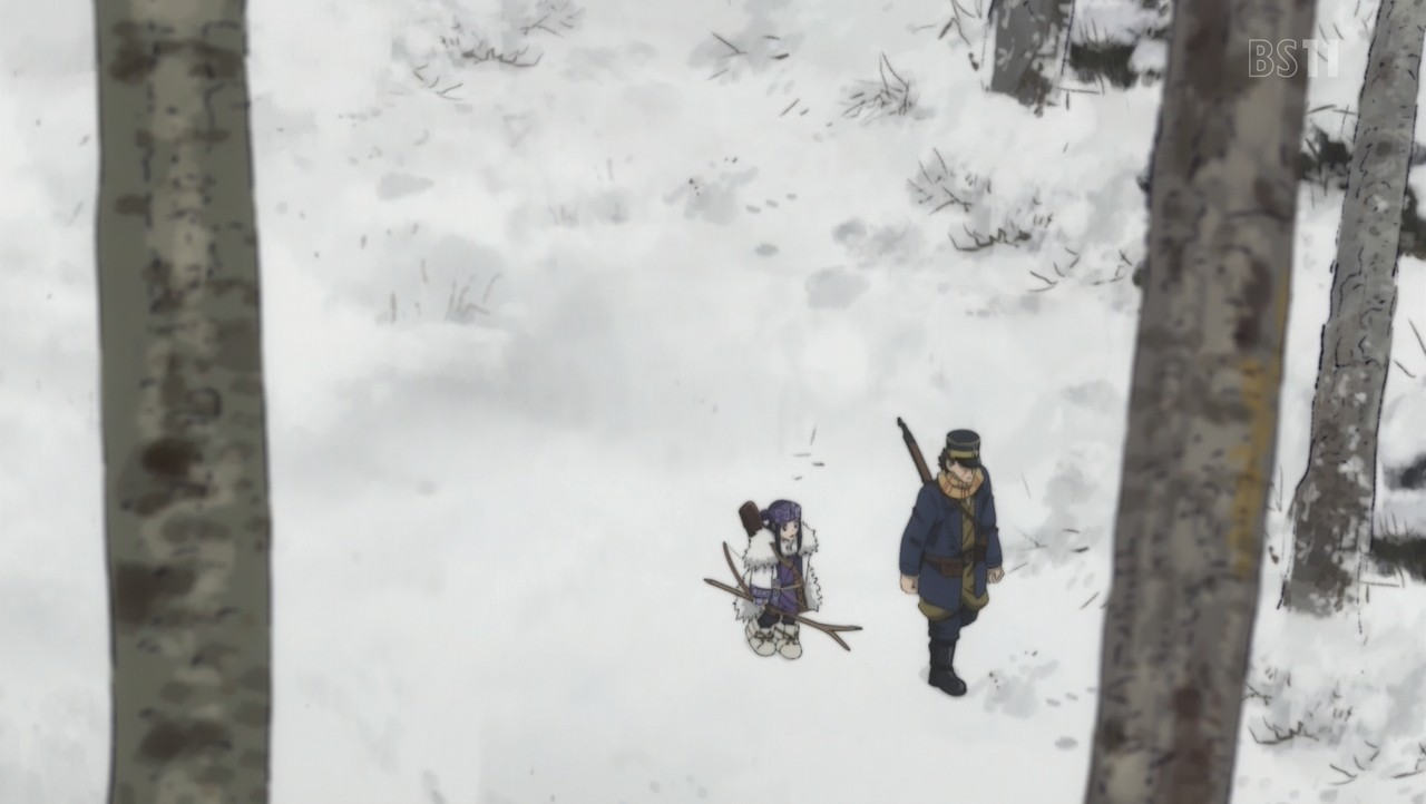 『アシリパさん…二手に別れよう。奴等は大人の足跡で追うはずだ。これをアシリパさんが持っていてくれ』