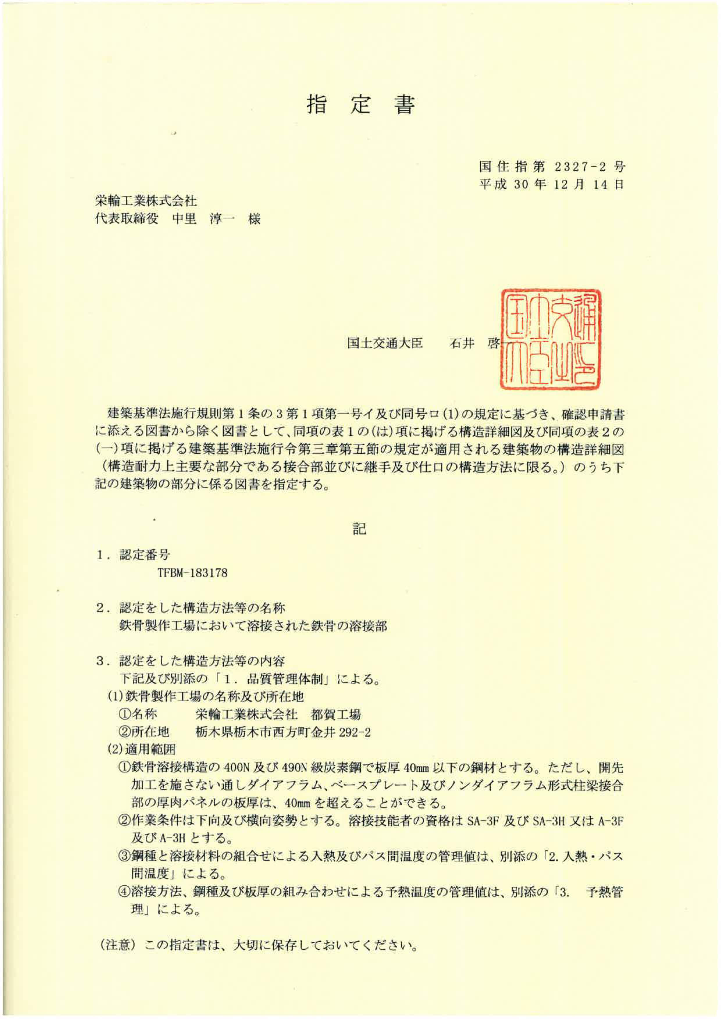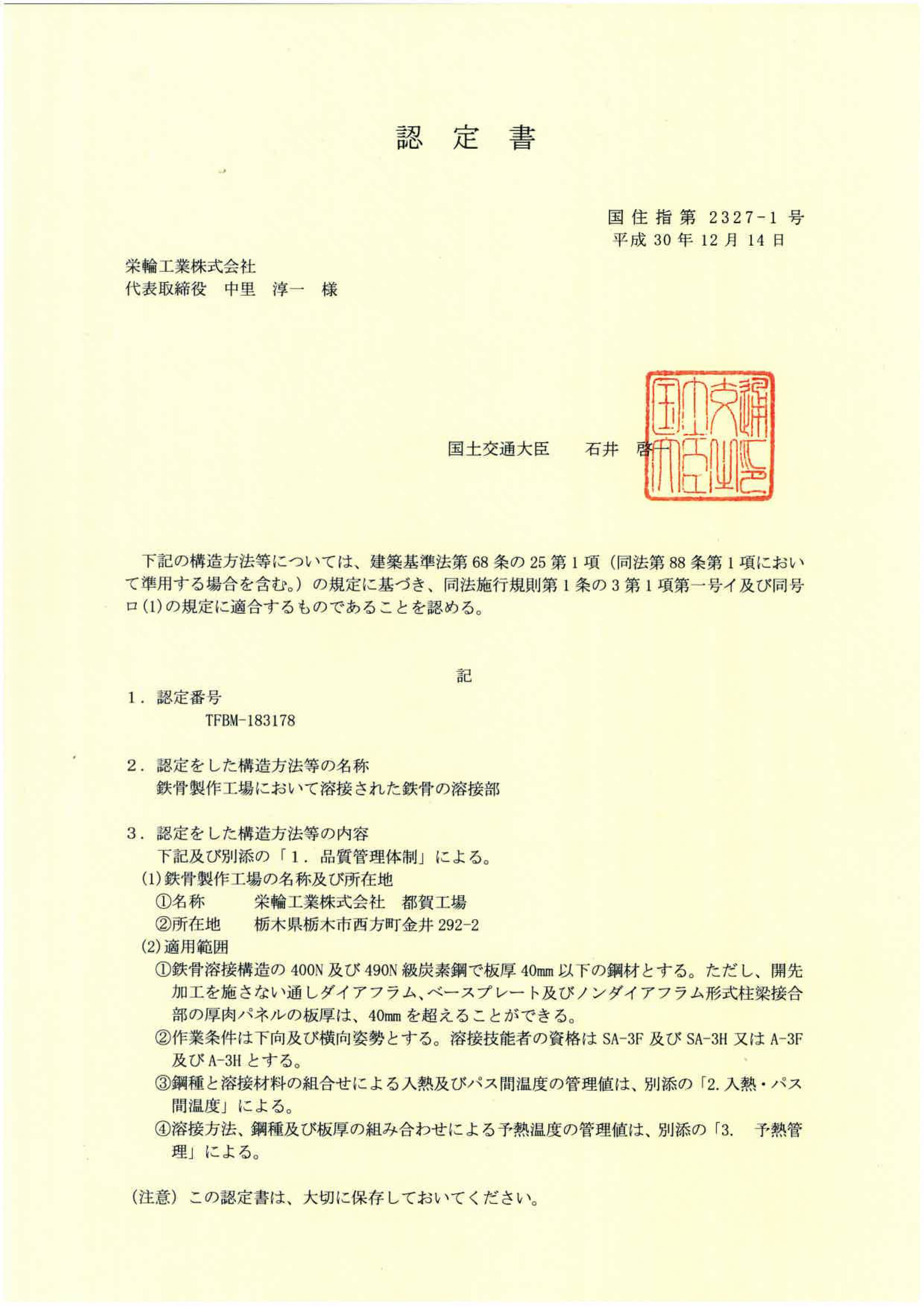 国土交通大臣認定Rグレードを取得
