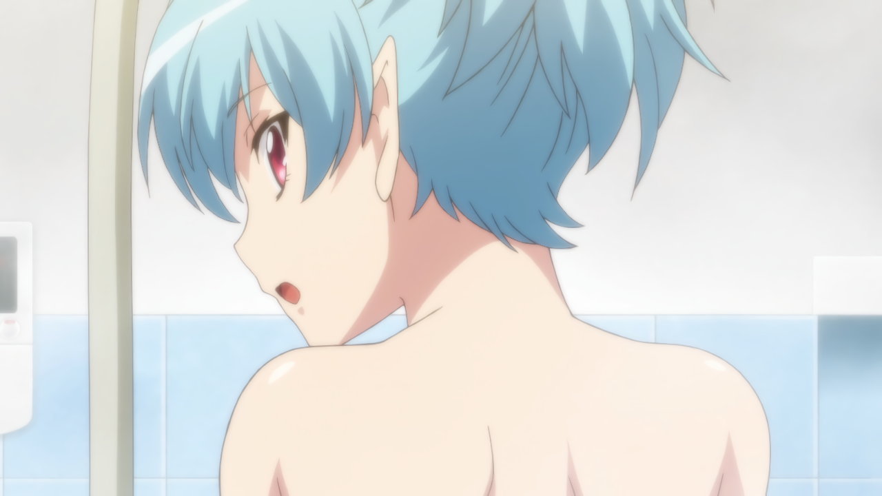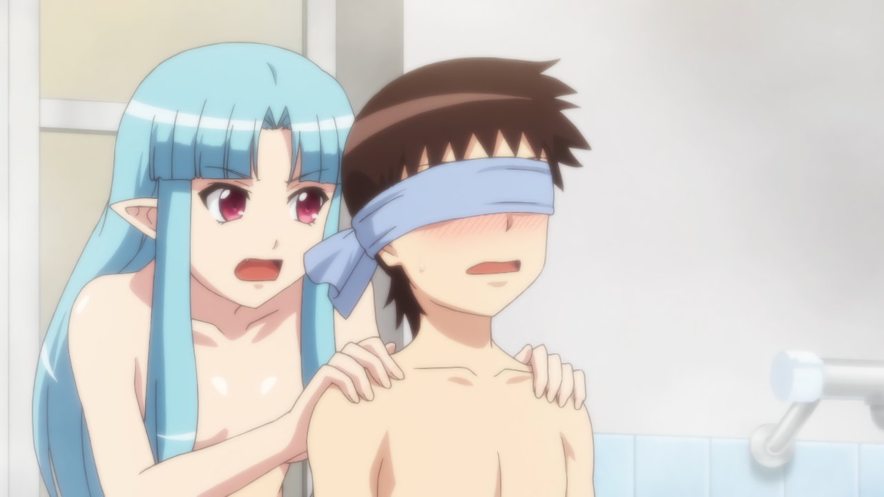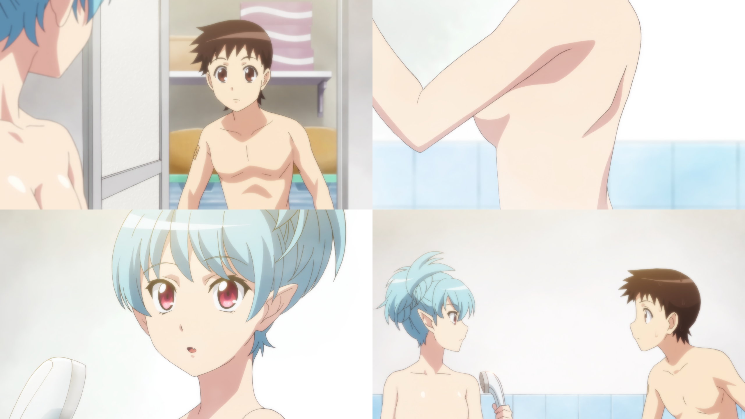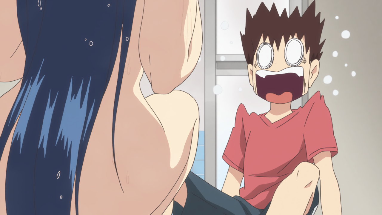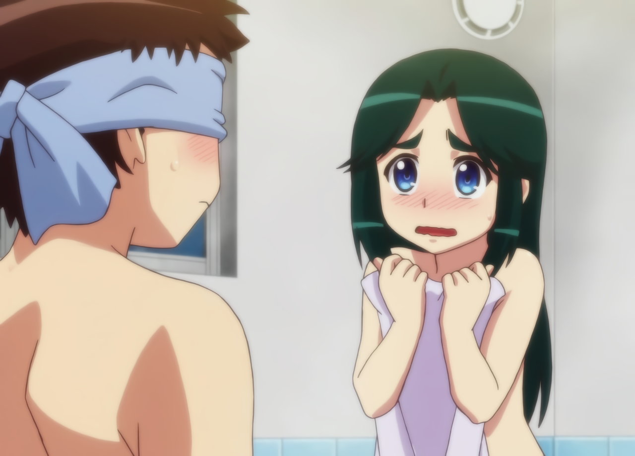 風呂場で入浴中の全裸桐葉に遭遇する一也。