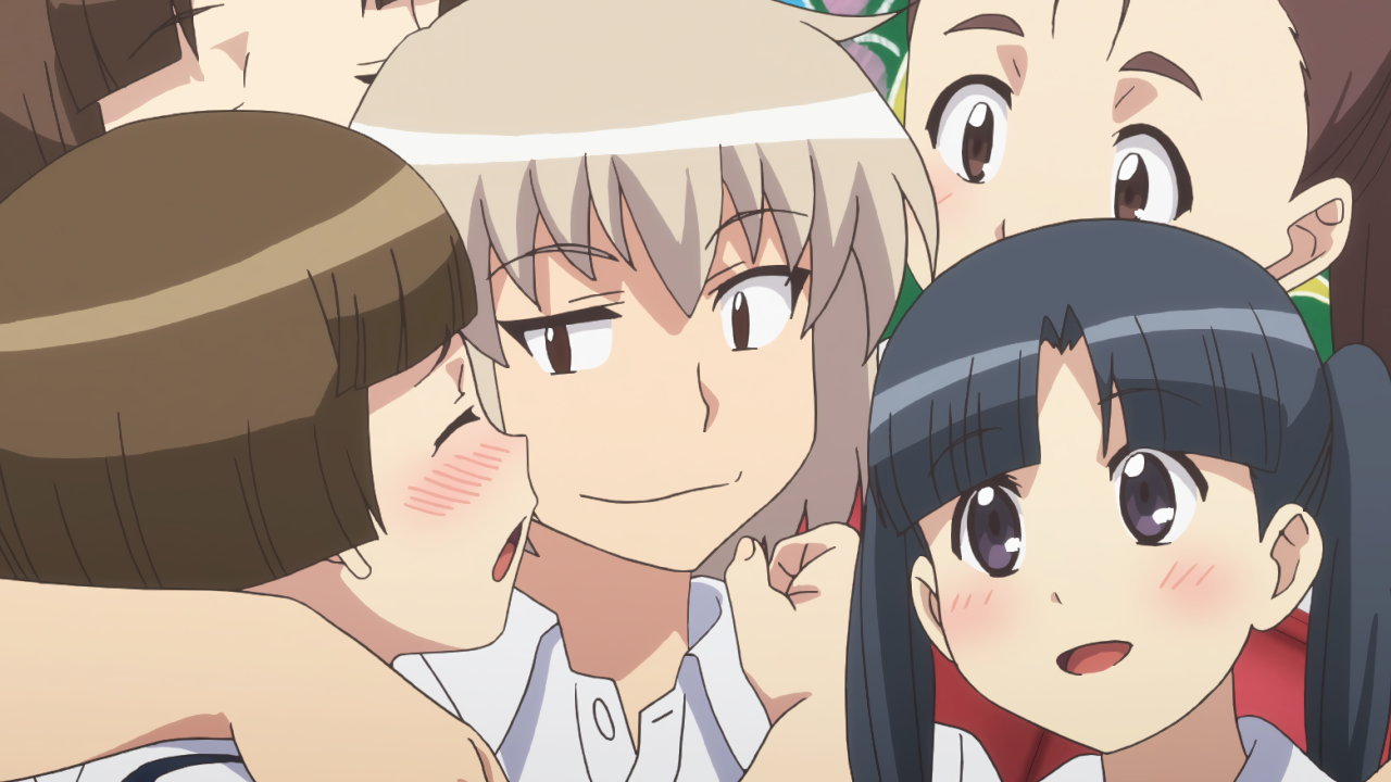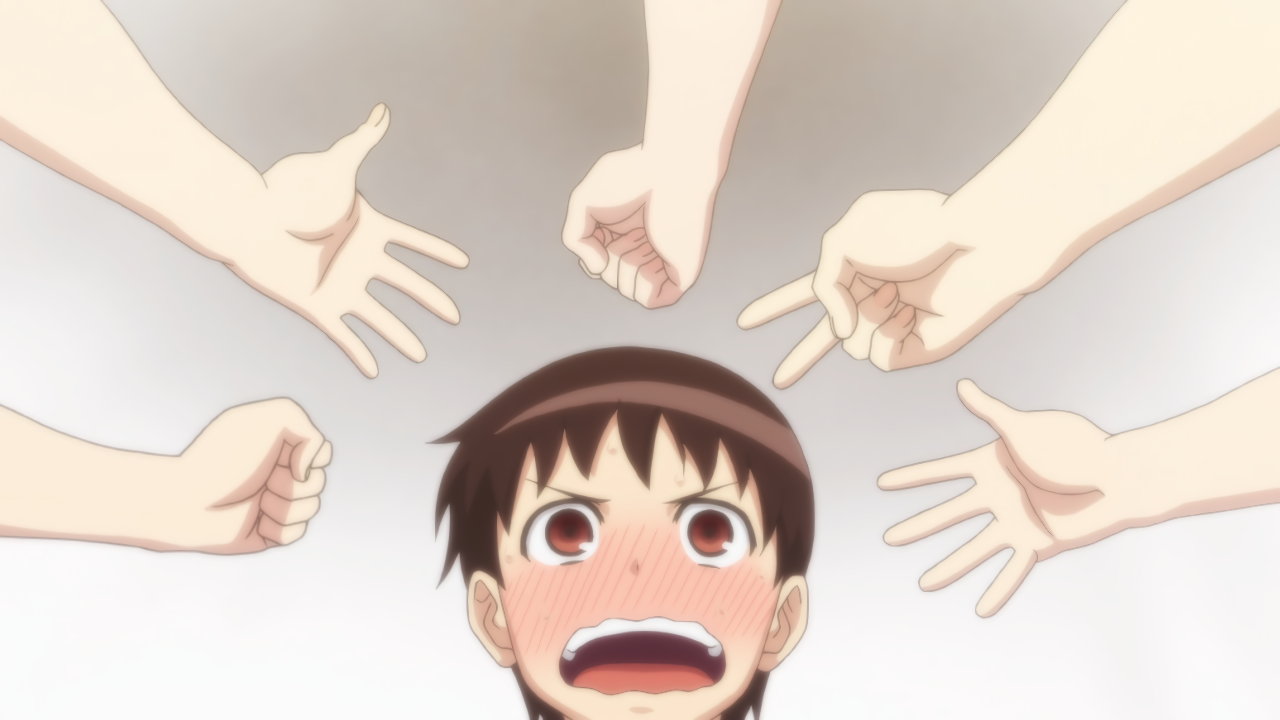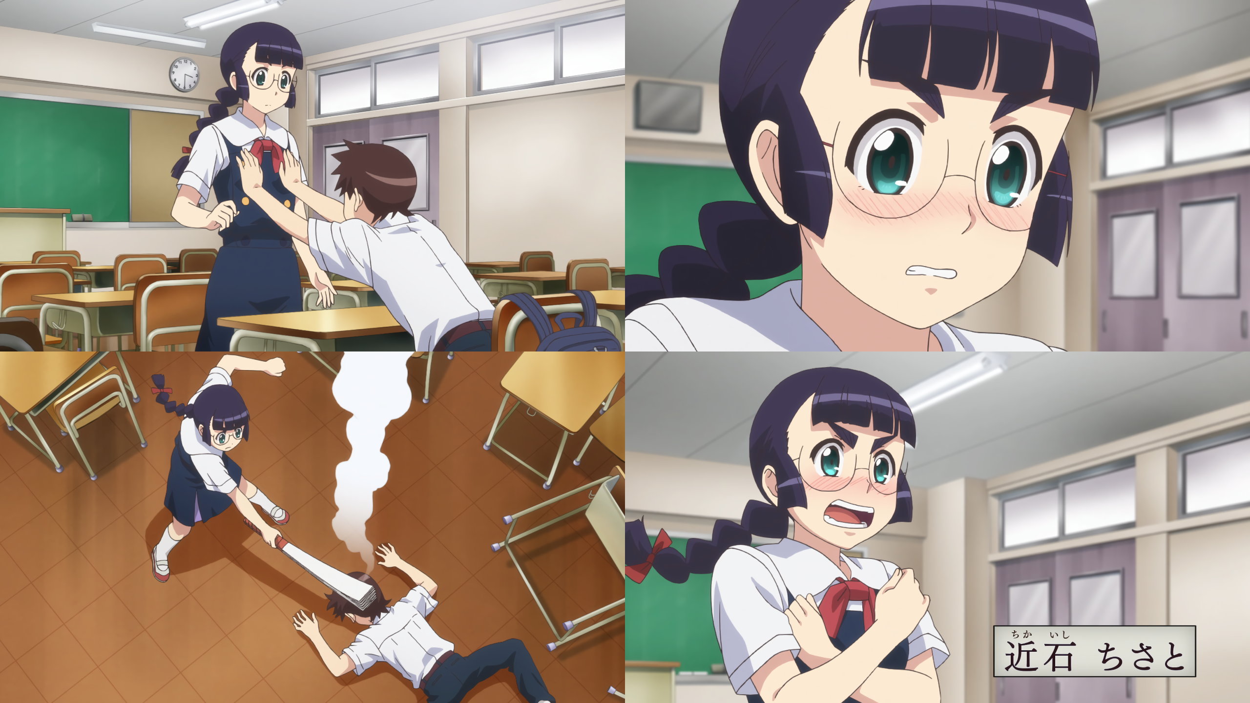 ちさとにラッキーパイタッチし、張扇制裁される一也。