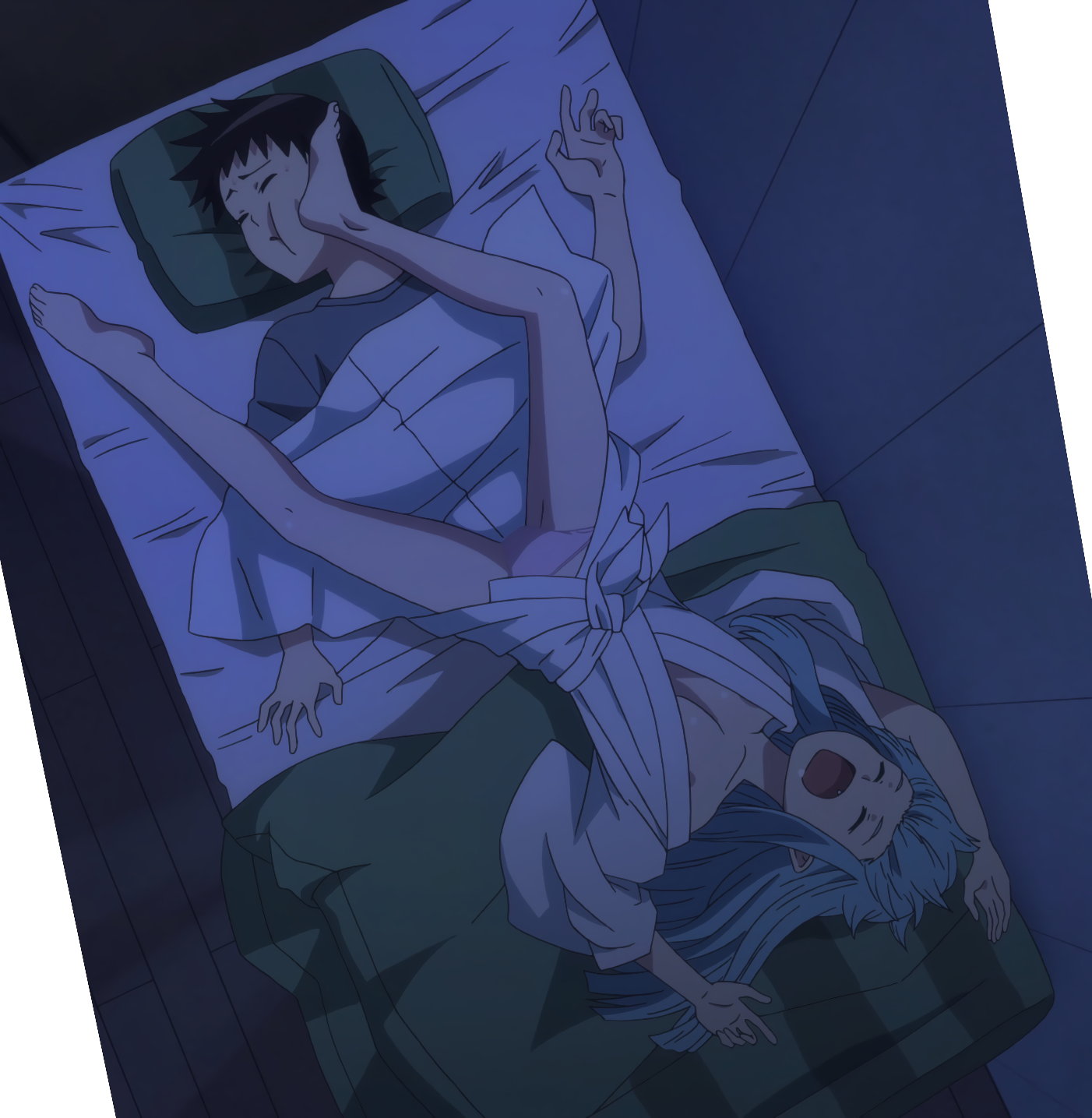 一也に抱きつきながら眠る桐葉。