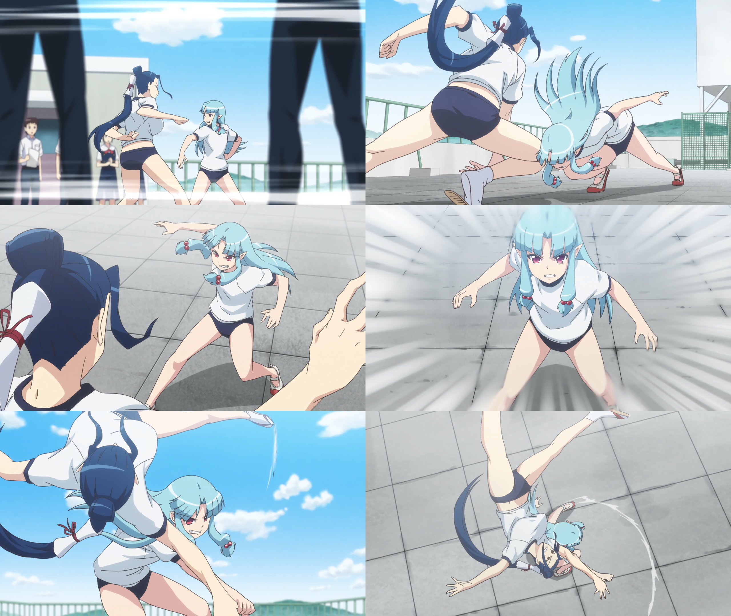 ブルマ体操服姿で戦う、黒耀と桐葉。