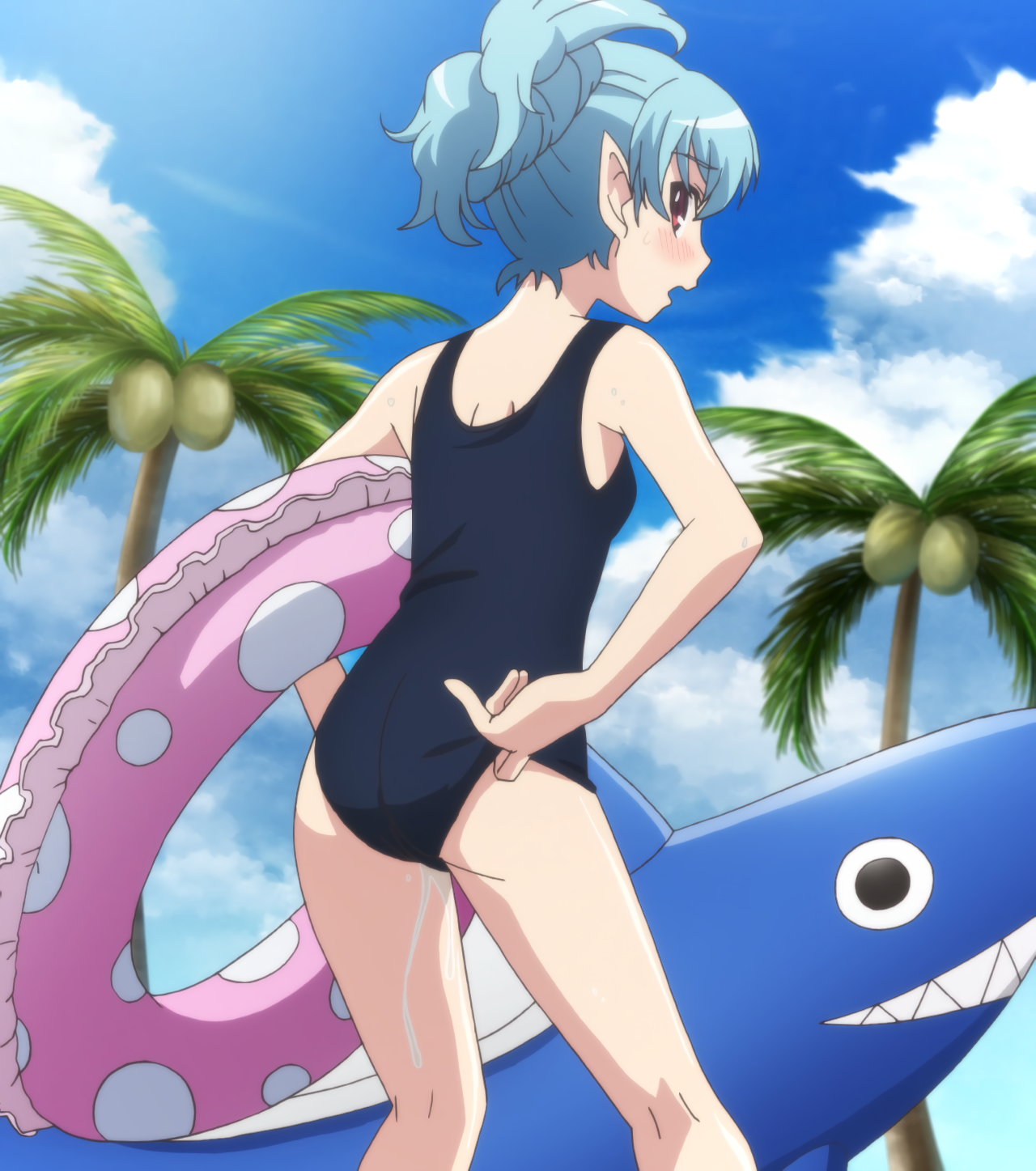 スクール水着姿の桐葉。