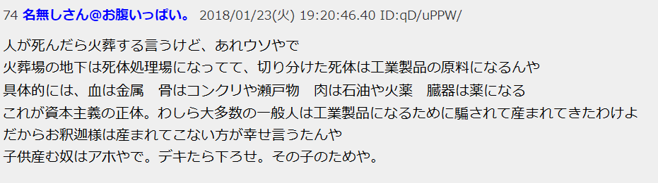 死体からモノを作ってて、そのために人間産ませてるのが今の世界の実相であることには絶対に触れないんだよね