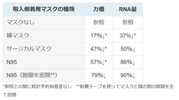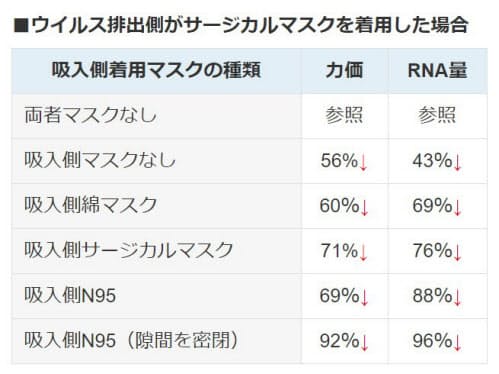 結果:両者がマスクをすれば、吸入されるウイルスの量が安定して減少することを示しました。