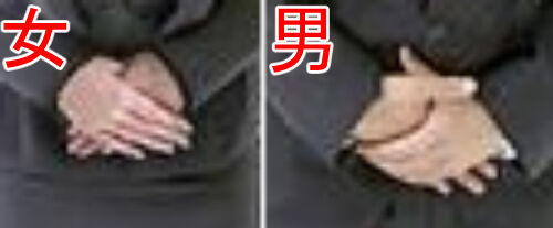 ここで手に注目してください。男女で重ねる手が違い、また親指が交差していることがわかります。