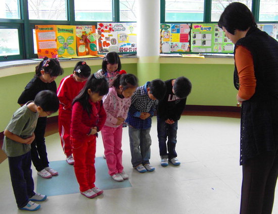 韓国の学校で「拱手挨拶(コンスインサ)」を教えているいう新聞記事でも、子どもたちは同様の手の動きをしている。