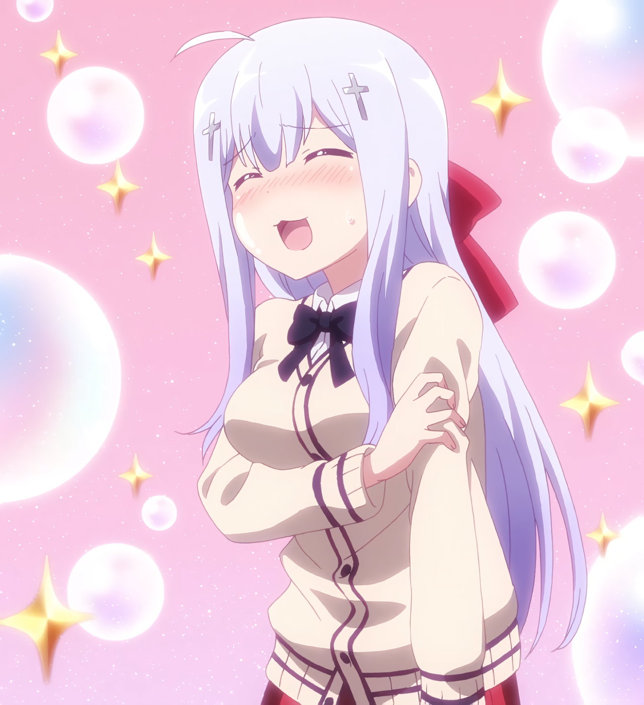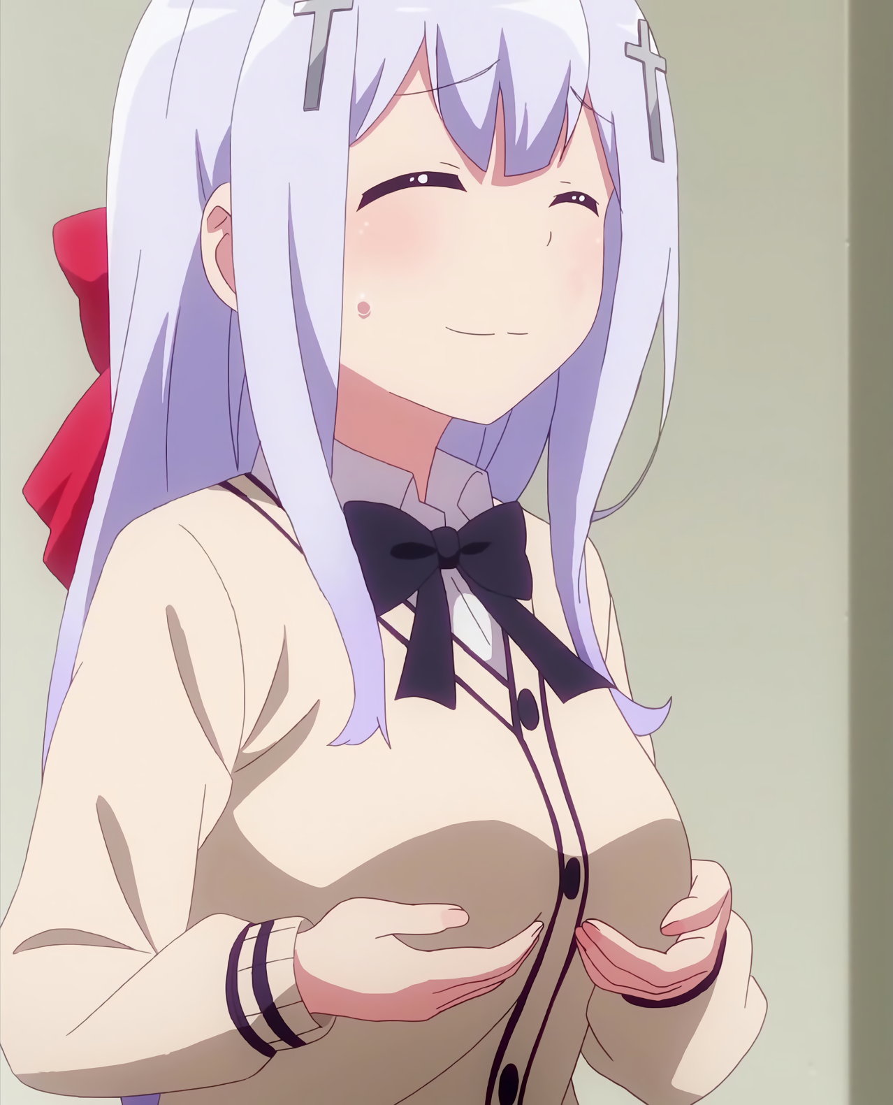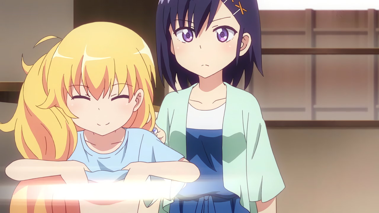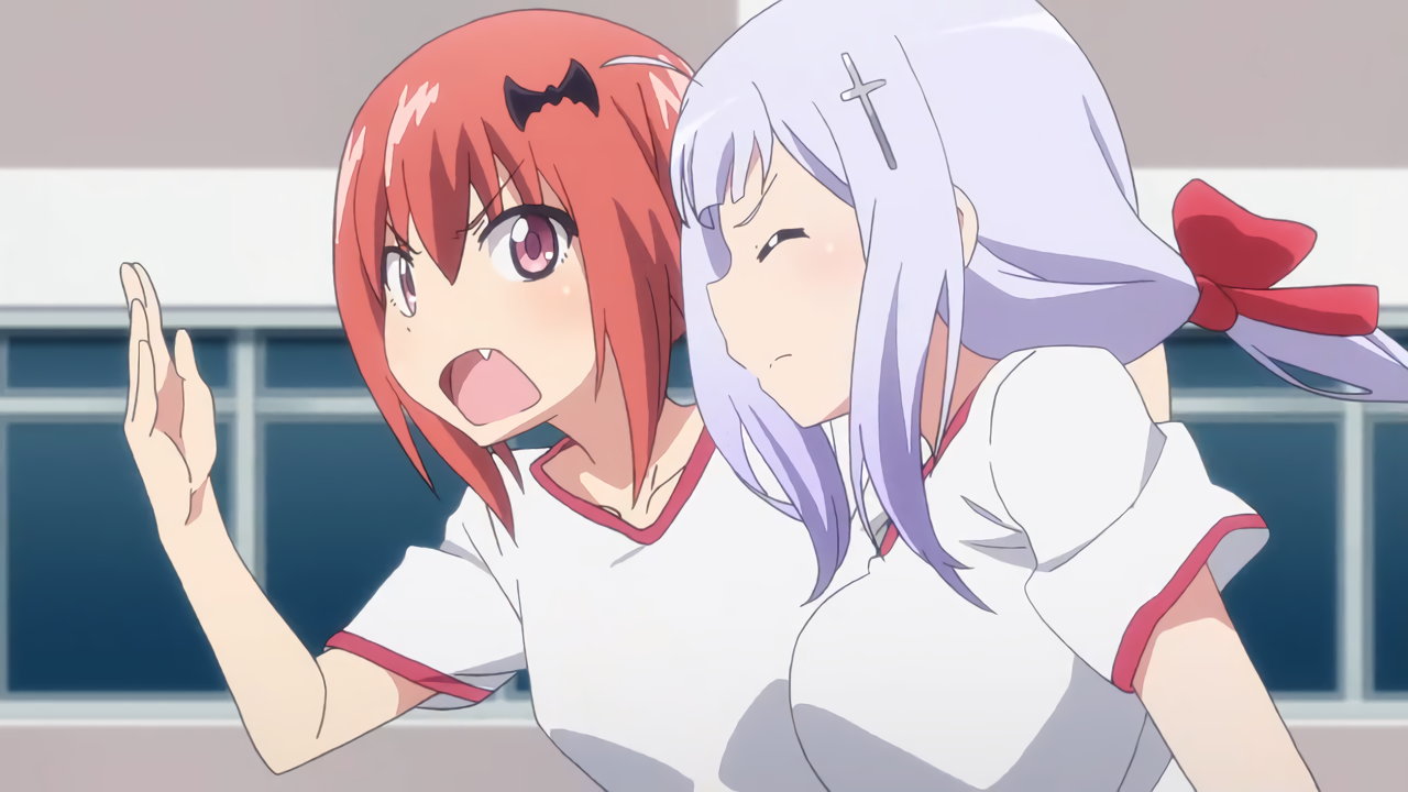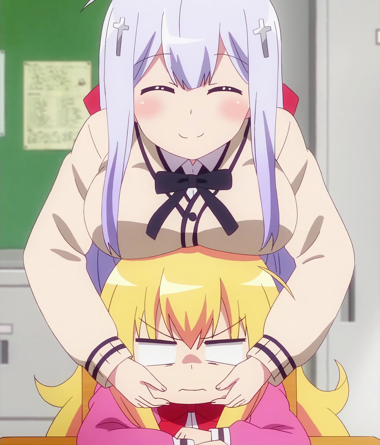 ガヴリールに巨乳を密着させるラフィエル。